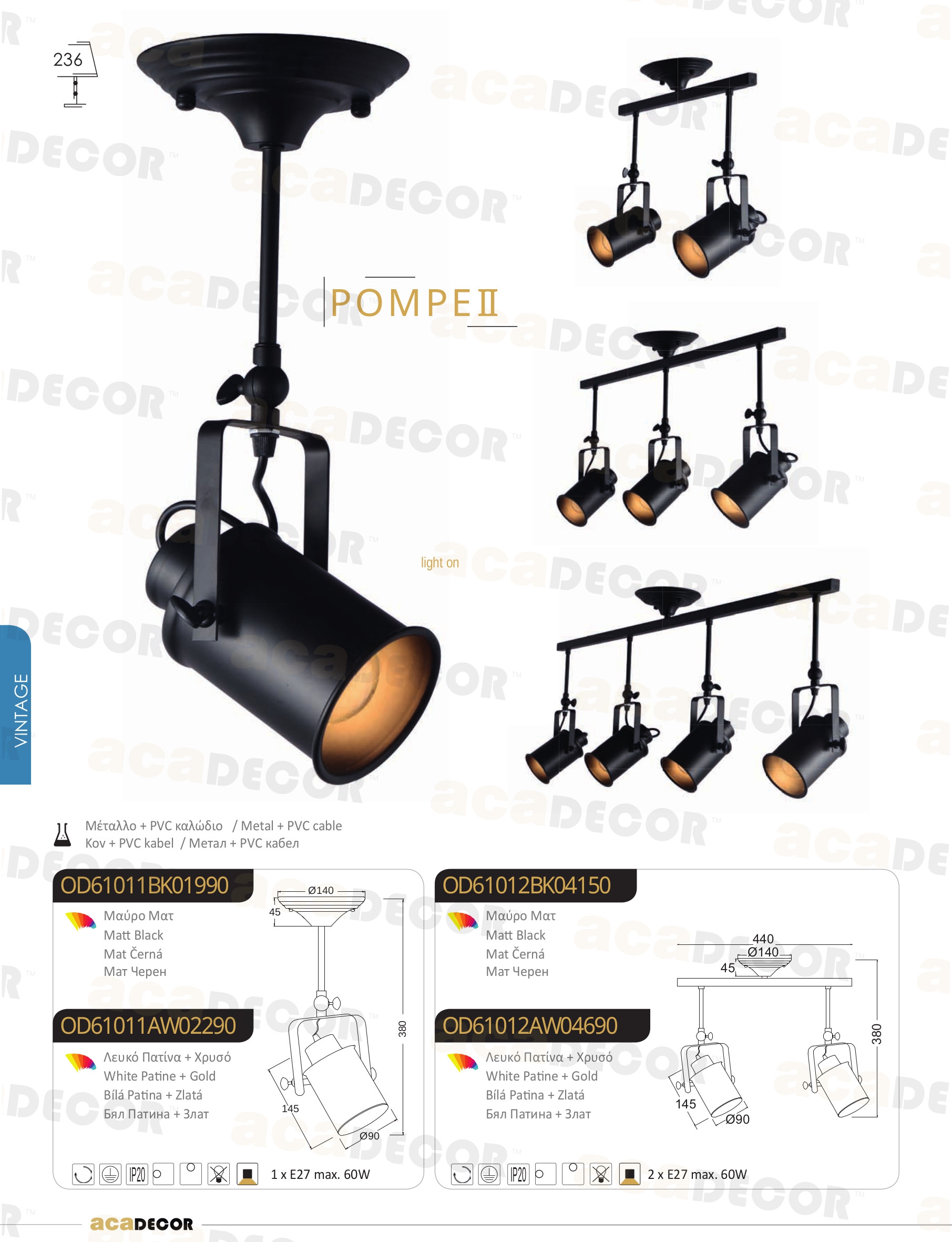 Осветителното тяло OD61011AW ще осигури комфорт и естетика във всяко помещение, в което се постави. Цялостната визия и дизайн на лампата и вложените в изработката й материали, като метал в цвят бял мат със златна патина, ще допринесат за един неповторим стил. Благодарение на дългогодишния опит, качествените материали и строгия контрол на качеството на изработка на производителя ACA-Lighting (Гърция), OD61011AW е на високо европейско ниво.
