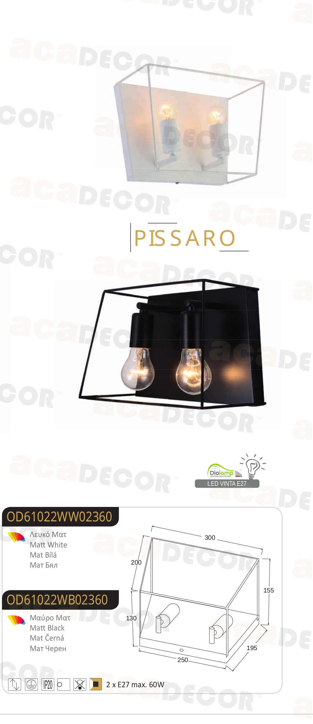 Ел. мощност 2 х 60 W Размери 15.5см x 19.5см x 30см Производител ACA-Lighting, Гърция