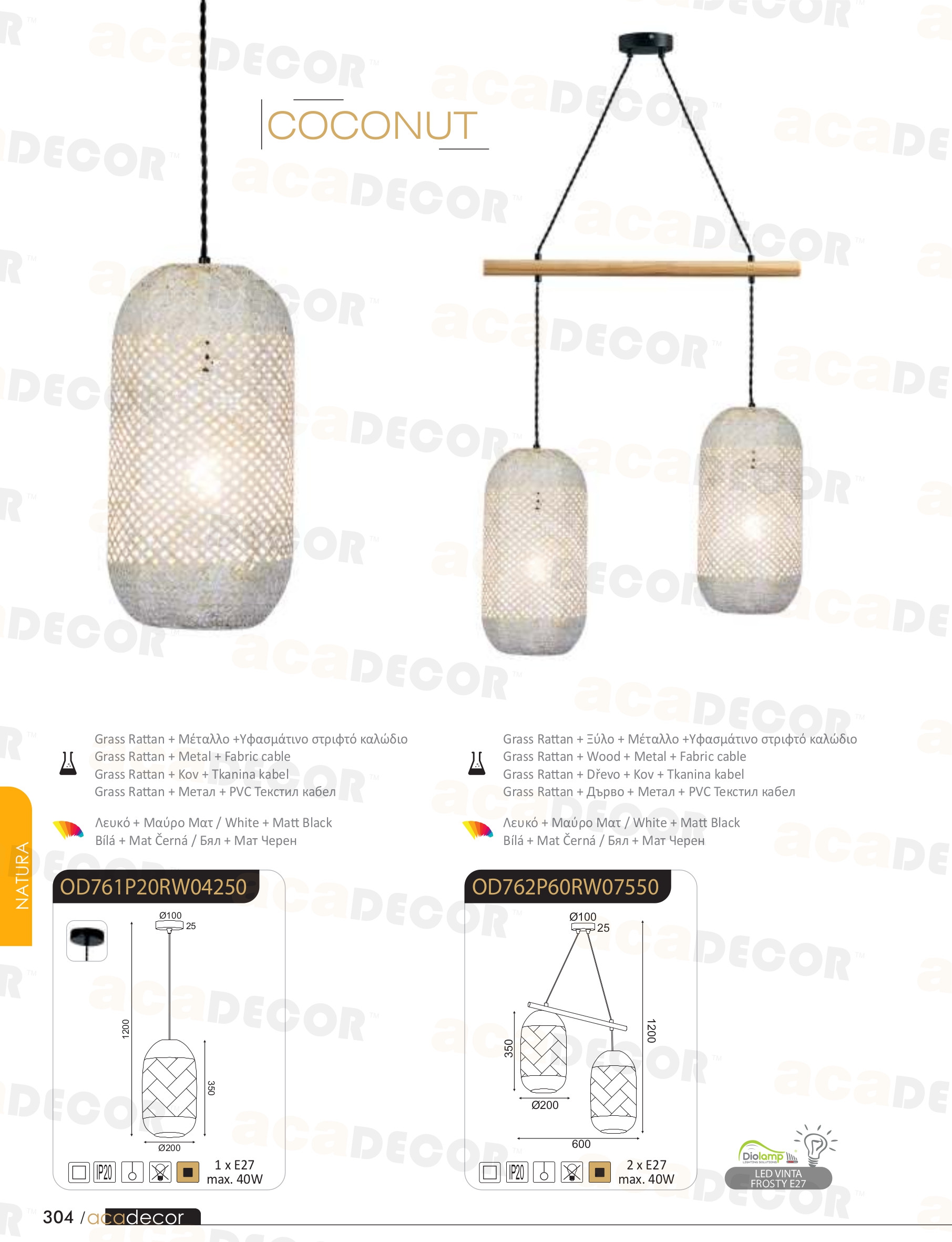 Осветителното тяло OD761P20RW ще осигури комфорт и естетика във всяко помещение, в което се постави. Цялостната визия и дизайн на лампата и вложените в изработката й материали, като ратан, метал в цвят черен мат, черен PVC кабел с текстилна оплетка, ще допринесат за един неповторим стил. Благодарение на дългогодишния опит, качествените материали и строгия контрол на качеството на изработка на производителя ACA-Lighting (Гърция), OD761P20RW е на високо европейско ниво.