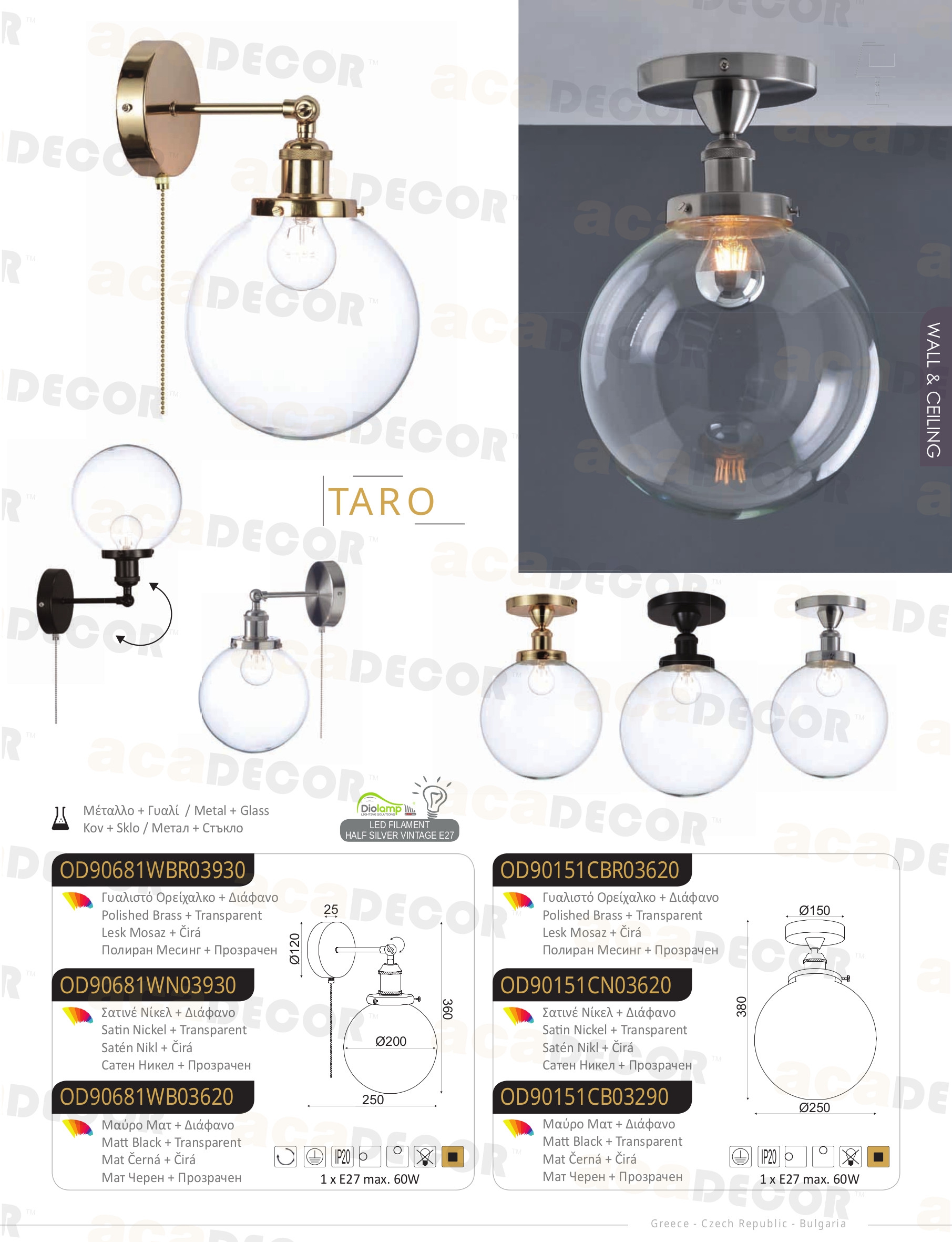 Благодарение на дългогодишния успешен производствен опит в областта на осветителни тела, качеството на изработка на производителя ACA-Lighting (Гърция) е на изключително високо европейско ниво.