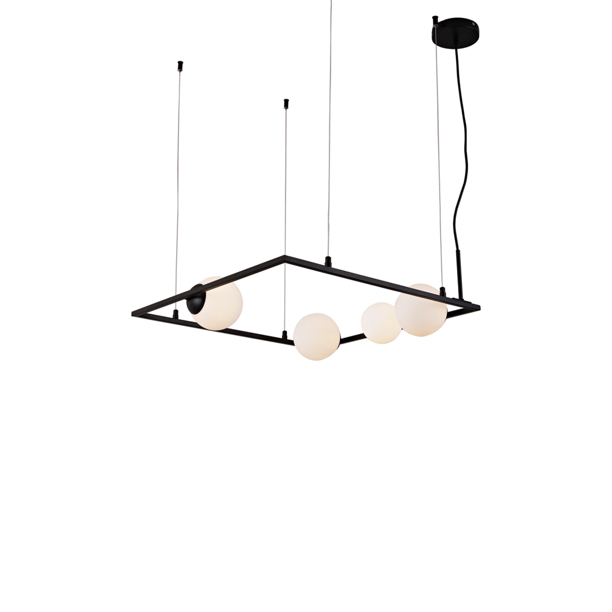 За стила и естетиката на интериора допринасят, както цялостната визия и дизайн на осветителното тяло, така и вложените от производителя в изработката висококачествени материали, като метал в черен цвят, стъкло в бяло, черен PVC кабел.
