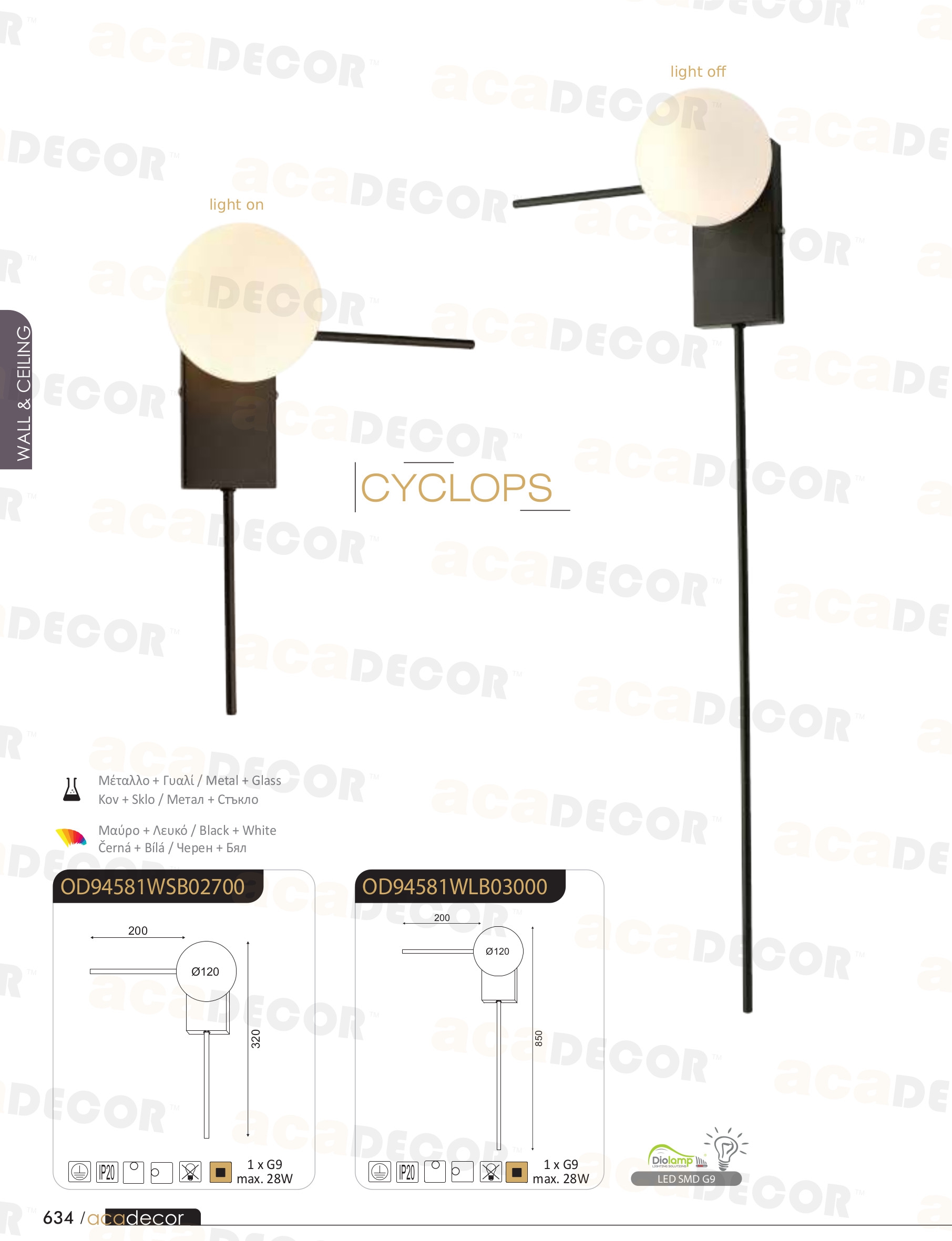 Осветителното тяло OD94581WSB ще осигури комфорт и естетика във всяко помещение, в което се постави. Цялостната визия и дизайн на лампата и вложените в изработката й материали, като метал в черен цвят, стъкло в бяло, ще допринесат за един неповторим стил. Благодарение на дългогодишния опит, качествените материали и строгия контрол на качеството на изработка на производителя ACA-Lighting (Гърция), OD94581WSB е на високо европейско ниво.