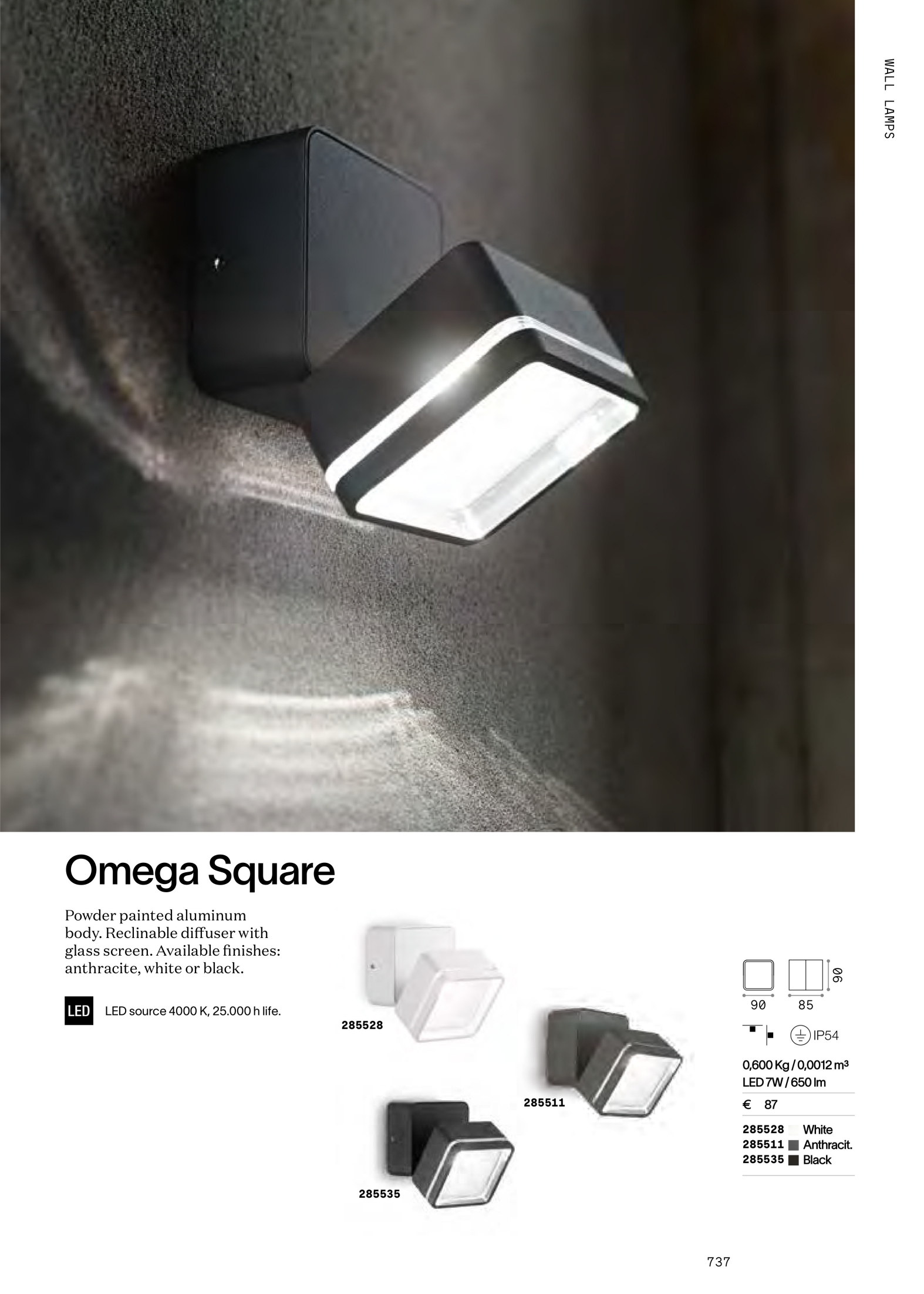 Осветителното тяло OMEGA AP SQUARE NERO 4000K ще осигури комфорт и естетика във всяко помещение, в което се постави. Цялостната визия и дизайн на лампата и вложените в изработката й материали, като алуминий с прахово нанесено покритие в черен цвят, накланящ се дифузер с екран от стъкло, ще допринесат за един неповторим стил. Благодарение на дългогодишния опит, качествените материали и строгия контрол на качеството на изработка на производителя Ideal-Lux (Италия), OMEGA AP SQUARE NERO 4000K е на високо европейско ниво.