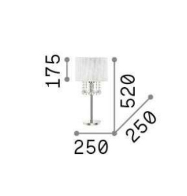 Стилът и естетиката на интериора ще се обогатят благодарение, както на цялостната визия, стил и дизайн на осветителното тяло, така и на вложените от производителя в изработката на OPERA TL1 BIANCO, качествени материали, като: хромиран метал, абажур от бял текстил с втъкани метални нишки, фасетирани кристални висулки, захранващ кабел и ключ ON/OFF.