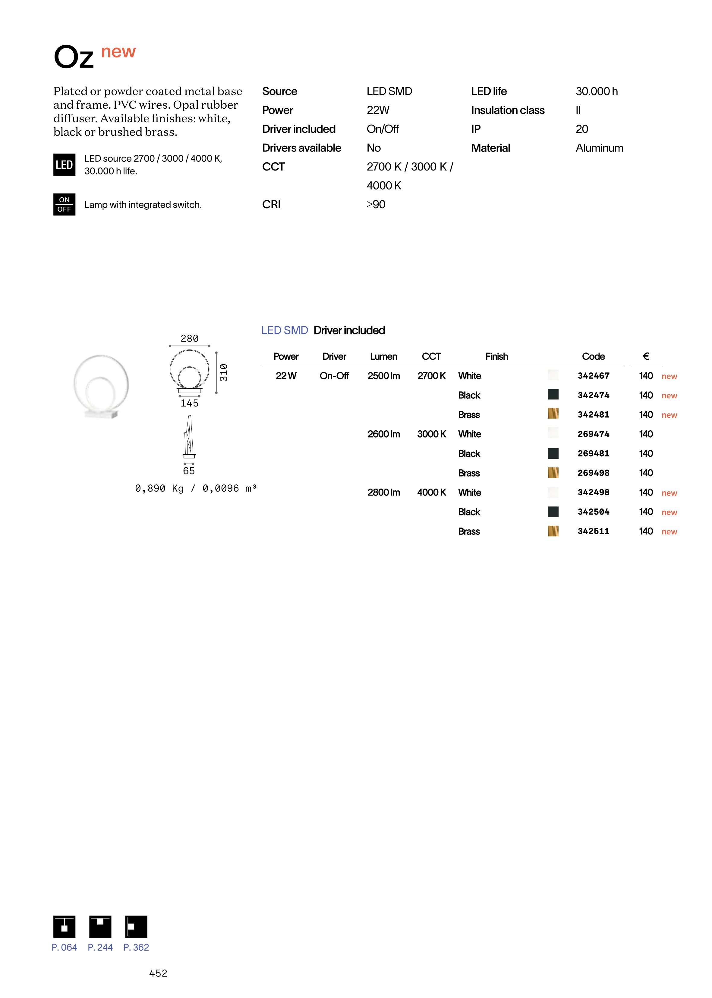 Включените в комплекта светлоизточници (1 х 22 W) са от клас LED, като светлинният им спектър е 2700 K. Тъй като LED лампите имат изключително дълъг живот и много ниска консумация, можете да бъдете сигурни, че това лед осветително тяло е правилна и дългосрочна инвестиция за Вашето осветление.
