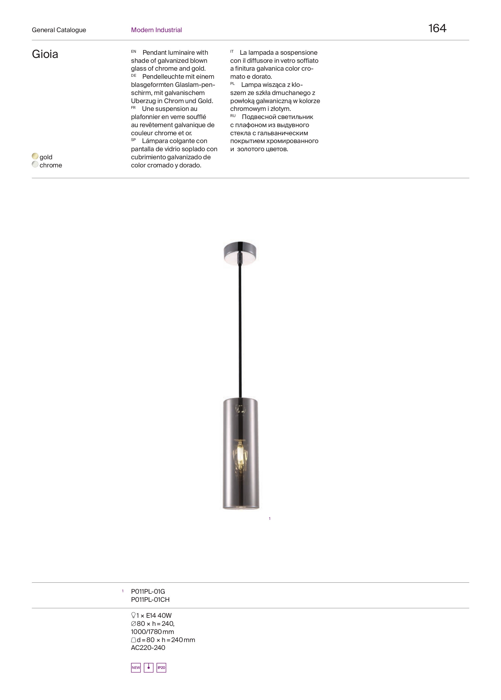 Осветителното тяло P011PL-01G представлява пендел в съвременен, дизайнерски стил. P011PL-01G е от категорията осветителни тела и е подходящо за осветяване на различни помещения и пространства като: всекидневна / хол, спалня, кухня, трапезария, коридор, антре, офис.
