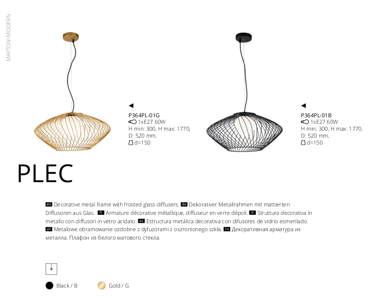 Магазини ОРИОН представят осветителното тяло P364PL-01G, което представлява полилей в съвременен стил. Лампата е част от категорията полилеи и е подходяща за различни помещения и пространства, като например всекидневна / хол, спалня, кухня, трапезария, офис.