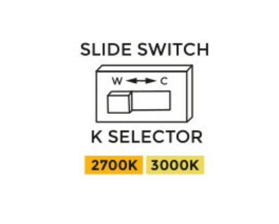 метал в цвят текстурирано черно, полимер в цвят бял опал, 2700/3000К възможност за промяна на цветната температура, чрез плъзгащ превключвател
