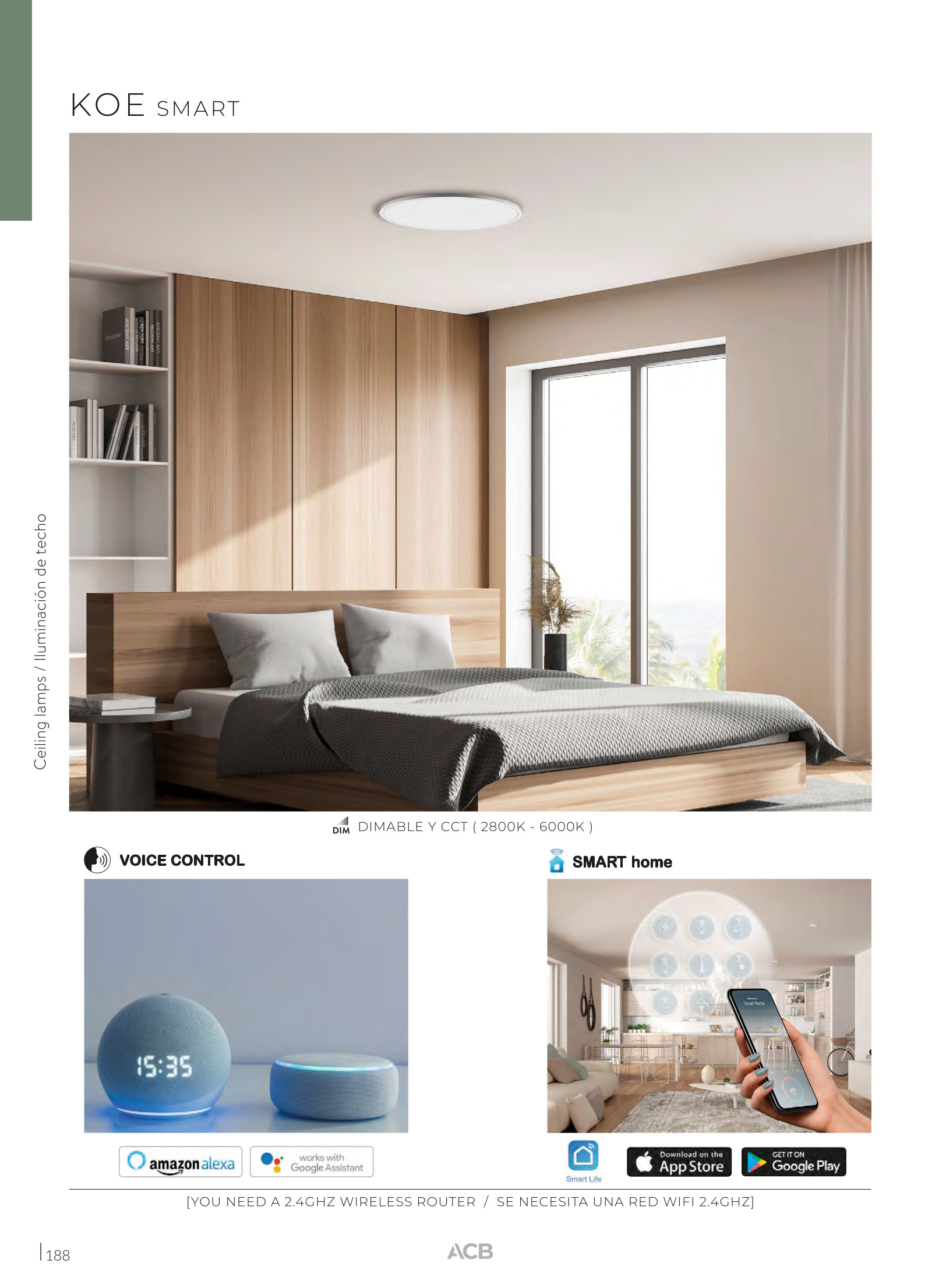 полимер (РММА) в текстурирано бяло, акрил в бял цвят, контрол на цветната температура 2800-6000К и димиране с приложения за смартфон