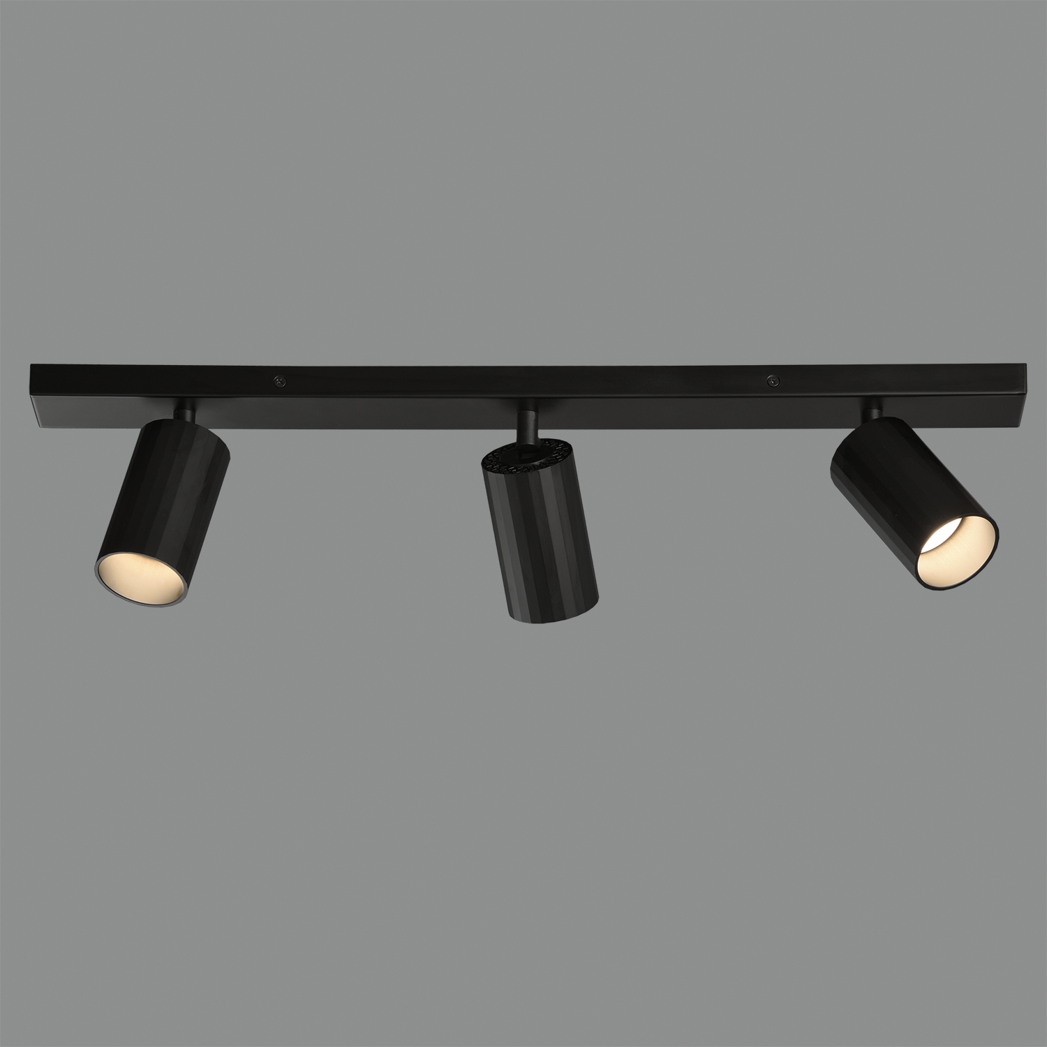 алуминиева основа в черен цвят, подвижни алуминиеви осветителни тeла в черно, ъгъл на завъртане 360° и ъгъл на светлинния лъч 90°