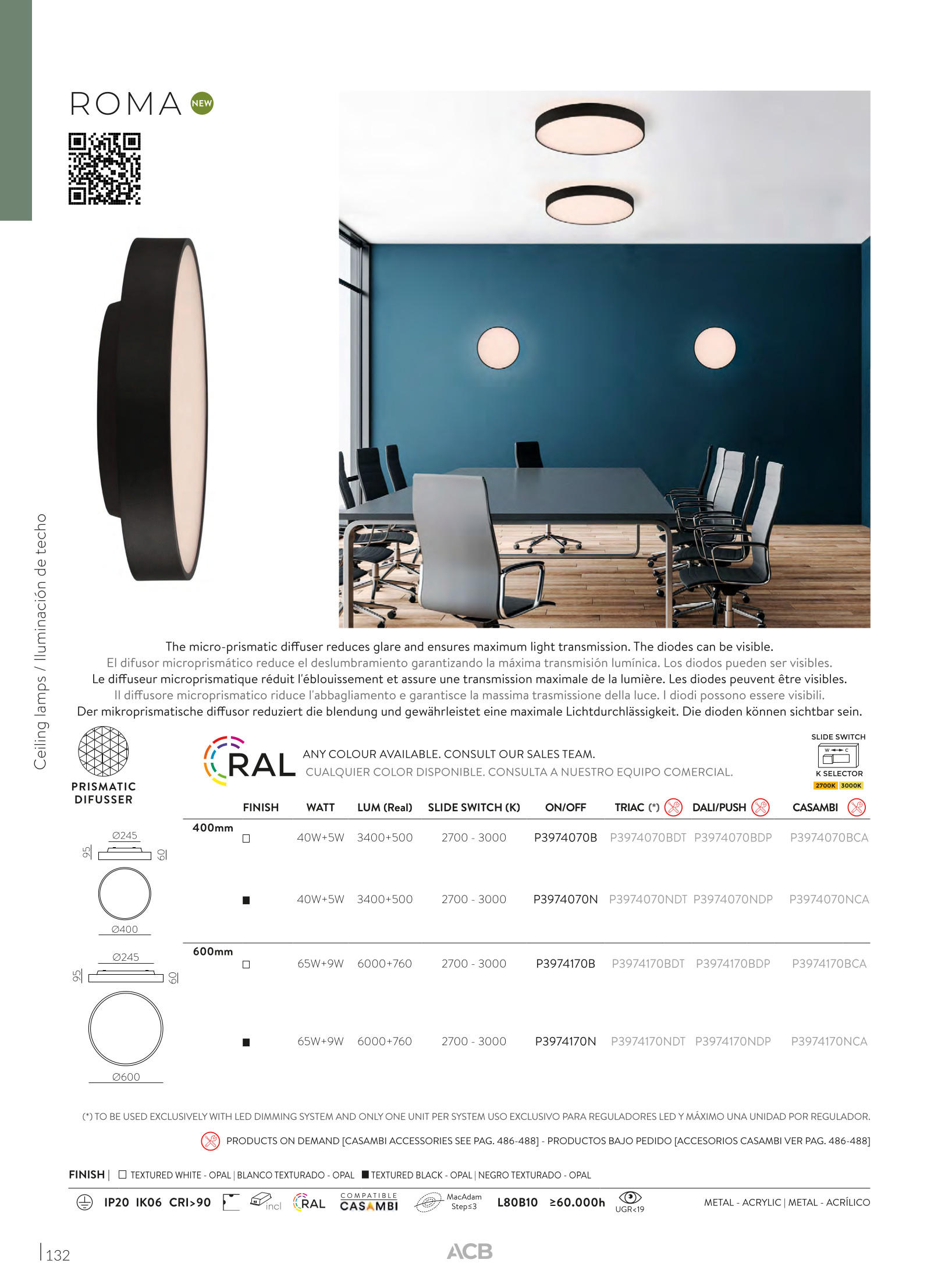 Лед плафон P3974070N ще осигури комфорт и естетика във всяко помещение, в което се постави. Цялостната визия и дизайн на led лампата и вложените в изработката й материали, като метал в цвят текстурирано черно, полимер в опалово бяло, превключвател за цветна температура 2700/3000К, ще допринесат за един неповторим стил. Благодарение на дългогодишния опит в производството на лед осветление, качествените материали и строгия контрол на качеството на изработка на производителя ACB (Испания), P3974070N е на високо европейско ниво.