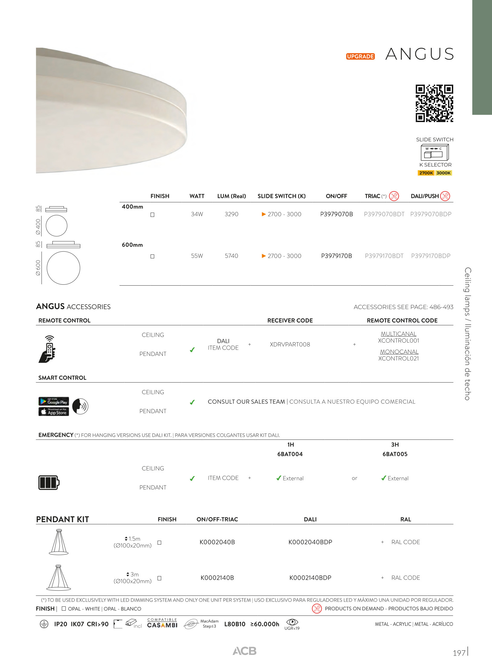 Осветителното тяло P3979070B ще осигури комфорт и естетика във всяко помещение, в което се постави. Цялостната визия и дизайн на лампата и вложените в изработката й материали, като метал в бял цвят, полимер в опалово бяло, контрол на цветната температура 2700/3000К, ще допринесат за един неповторим стил. Благодарение на дългогодишния опит, качествените материали и строгия контрол на качеството на изработка на производителя ACB (Испания), P3979070B е на високо европейско ниво.