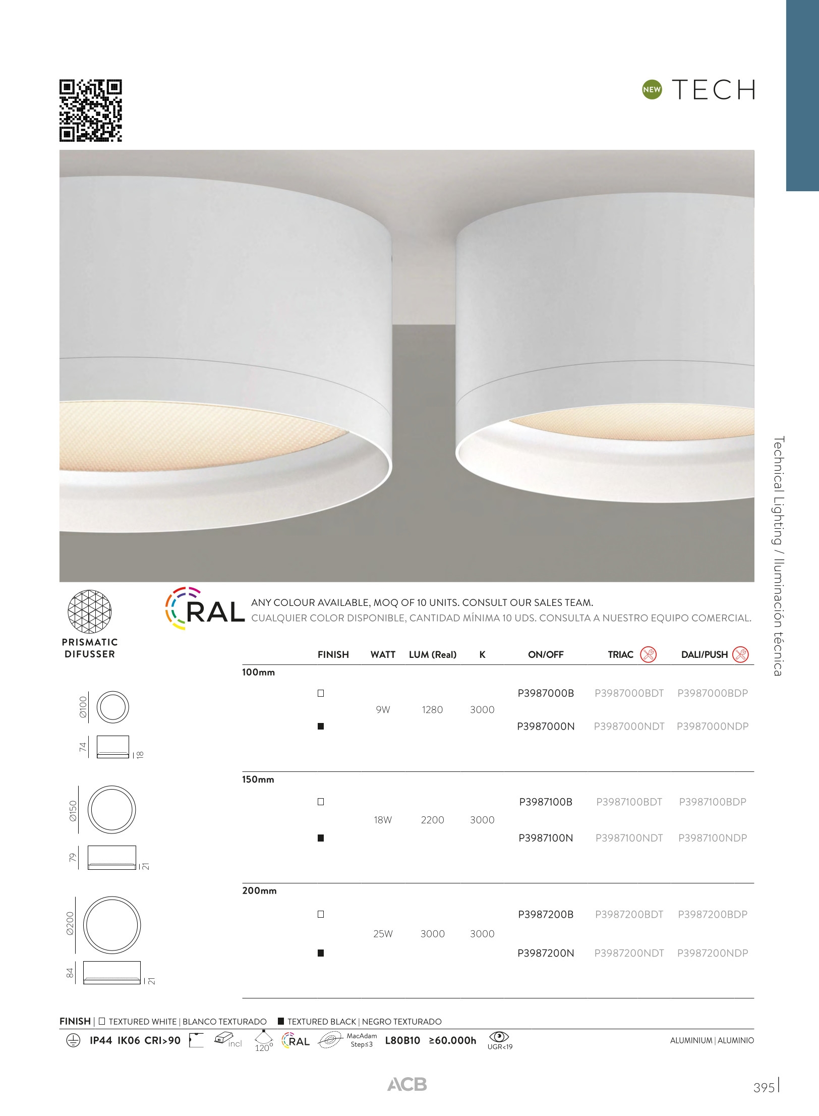Лед плафон P3987200B ще осигури комфорт и естетика във всяко помещение, в което се постави. Цялостната визия и дизайн на led лампата и вложените в изработката й материали, като алуминий в цвят текстурирано бяло, микропризматичният дифузер осигурява равномерно разпределение на светлината, ще допринесат за един неповторим стил. Благодарение на дългогодишния опит в производството на лед осветление, качествените материали и строгия контрол на качеството на изработка на производителя ACB (Испания), P3987200B е на високо европейско ниво.