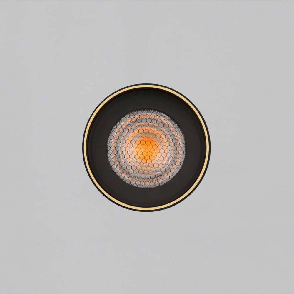алуминий в текстурирано черен и златен цвят, подвижен дифузьор тип „пчелна пита“ е включен в продукта, минимално количество при поръчка - 10бр.