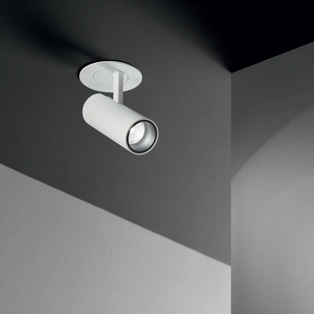 лят под налягане алуминий с прахово покритие в бяло с черен заден капак и вътрешен преден пръстен, акрилен дифузер, насочващо се тяло, ъгъл на разпространение на светлината 16°