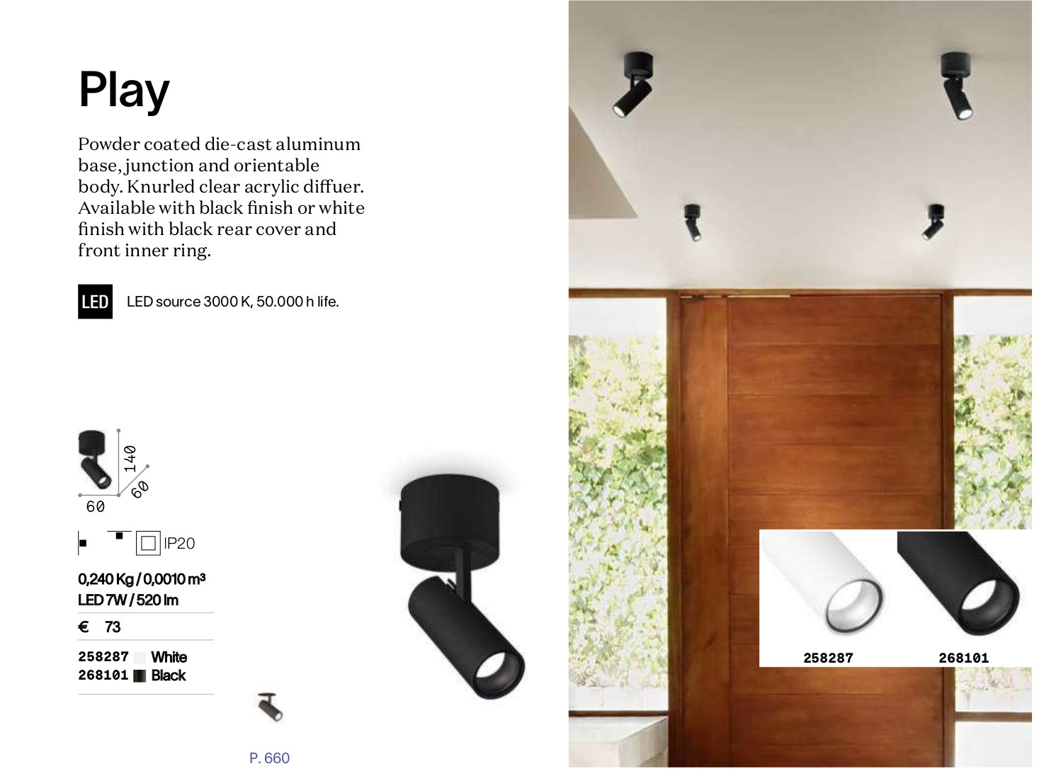 Лед спот лампа PLAY FI WH ще осигури комфорт и естетика във всяко помещение, в което се постави. Цялостната визия и дизайн на led лампата и вложените в изработката й материали, като лят под налягане алуминий с прахово покритие в бяло, акрилен дифузер, насочващо се тяло, ще допринесат за един неповторим стил. Благодарение на дългогодишния опит в производството на лед осветление, качествените материали и строгия контрол на качеството на изработка на производителя Ideal-Lux (Италия), PLAY FI WH е на високо европейско ниво.