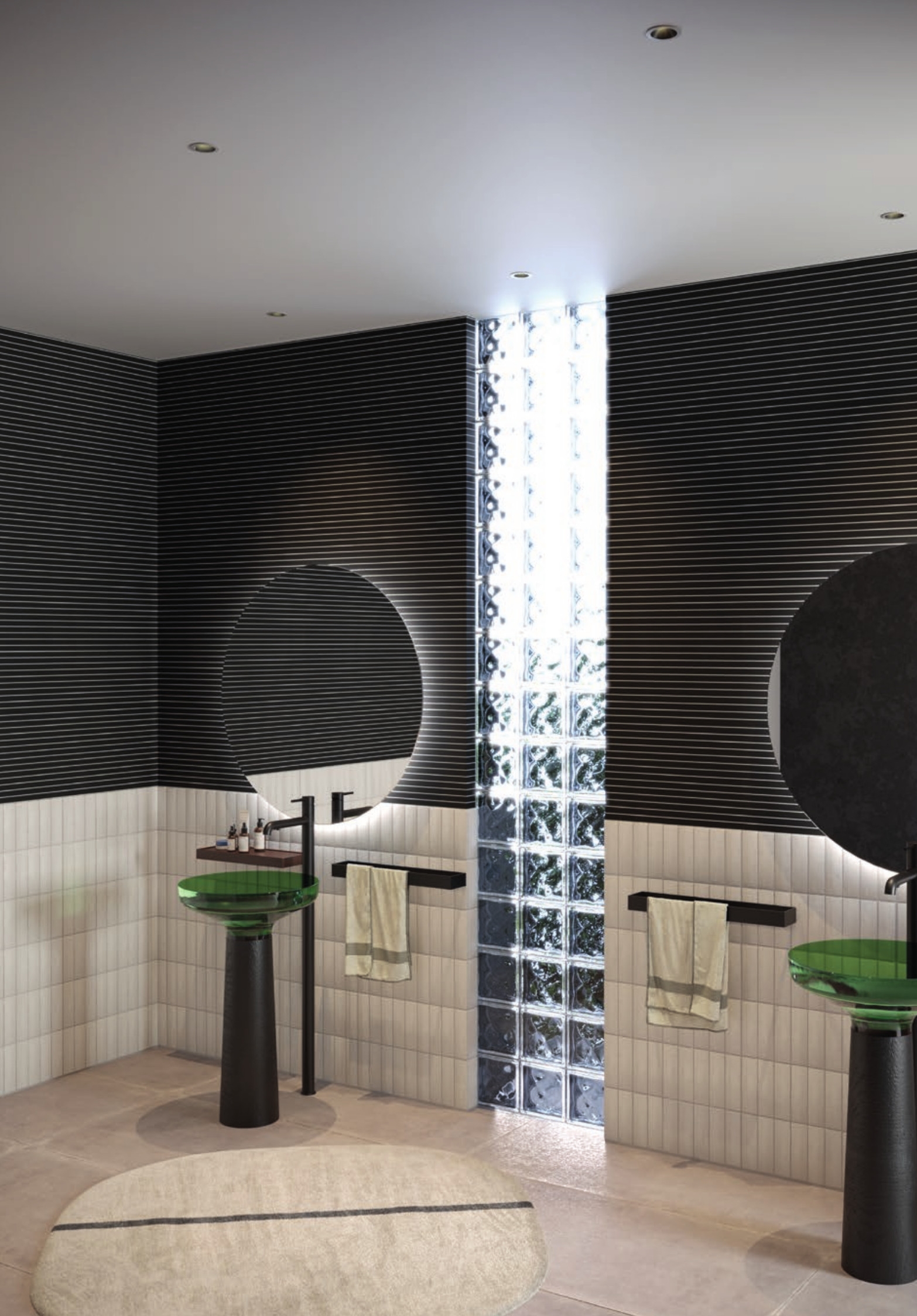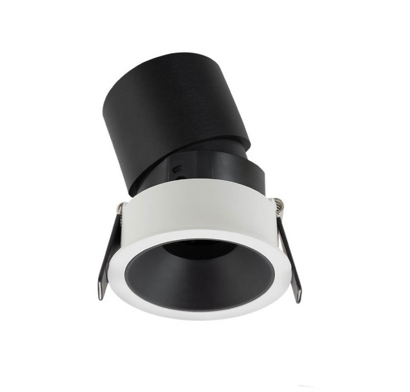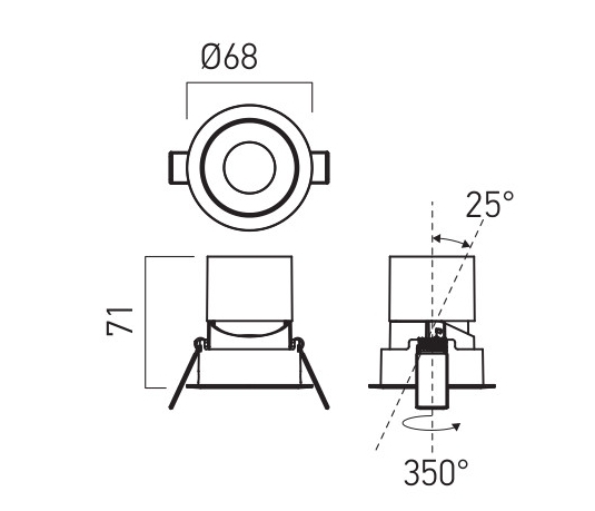 корпус от лят алуминий в пясъчно бяло, радиатор от лят алуминий в черно, рефлектор от фасетиран поликарбонат в сребристо, прозрачен дифузьор от полимер, декоративен пръстен в черно, тялото се накланя до 25° и се върти на 350°