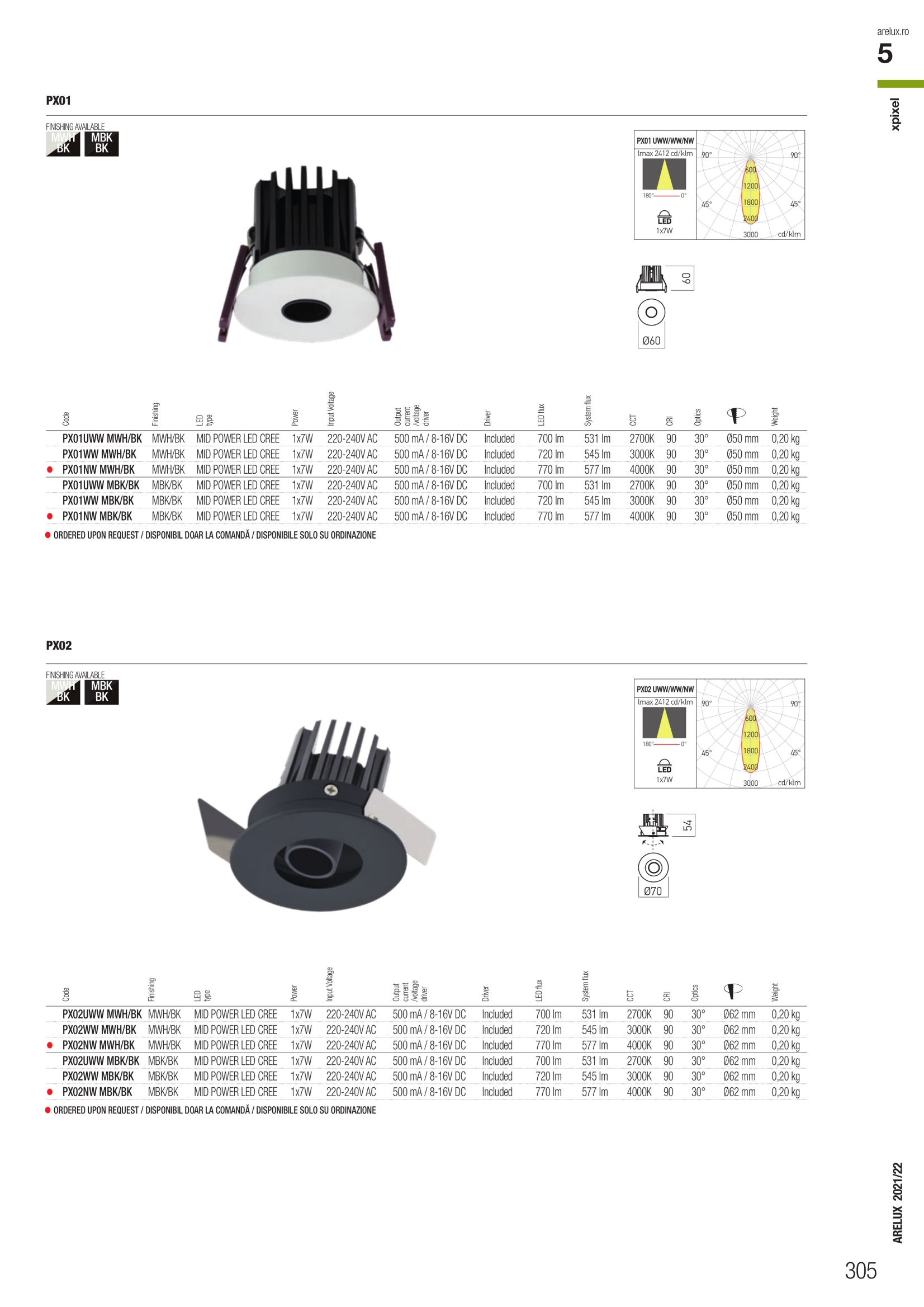 Осветителното тяло PX02WW MWH/BK ще осигури комфорт и естетика във всяко помещение, в което се постави. Цялостната визия и дизайн на лампата и вложените в изработката й материали, като корпус от лят алуминий в матово бял цвят, радиатор от лят алуминий в черно, рефлектор от сребрист фасетиран поликарбонат, дифузер от прозрачен поликарбонат, ще допринесат за един неповторим стил. Благодарение на дългогодишния опит, качествените материали и строгия контрол на качеството на изработка на дизайнерската линия Redo Arelux на производителя Redo (Румъния), PX02WW MWH/BK е на високо европейско ниво.