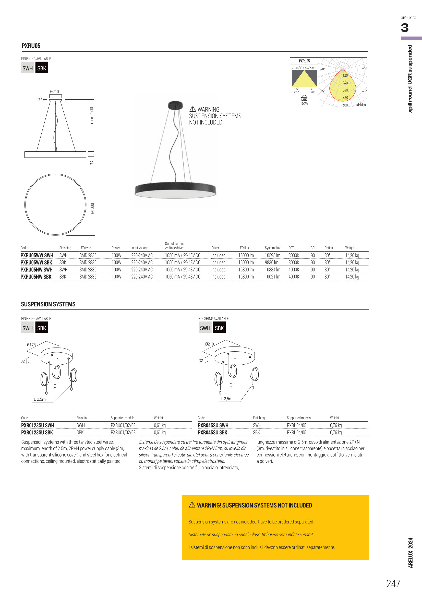 Лед плафон PXRU05WW SWH ще осигури комфорт и естетика във всяко помещение, в което се постави. Цялостната визия и дизайн на led лампата и вложените в изработката й материали, като алуминий, с електростатично нанесено пясъкоструйно покритие в пясъчно бял цвят, двоен дифузьор от сатениран поликарбонат и поликарбонат с микропризми, при желание за окачване аксесоарът се поръчва отделно, ще допринесат за един неповторим стил. Благодарение на дългогодишния опит в производството на лед осветление, качествените материали и строгия контрол на качеството на изработка на дизайнерската линия Redo Arelux на производителя Redo (Румъния), PXRU05WW SWH е на високо европейско ниво.