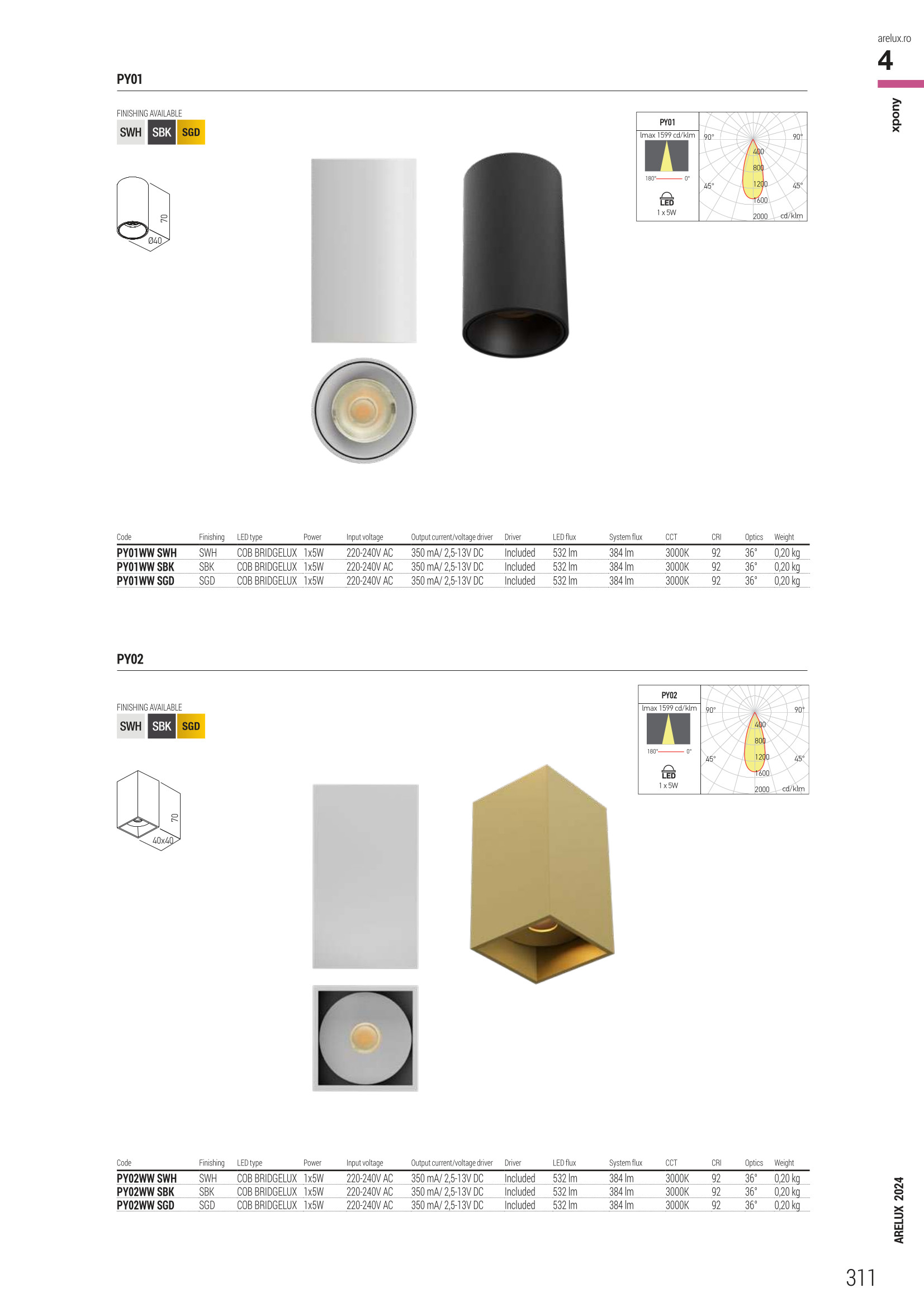 Лед луничка / луна, спот лампа PY01WW SWH ще осигури комфорт и естетика във всяко помещение, в което се постави. Цялостната визия и дизайн на led лампата и вложените в изработката й материали, като лят алуминий в матово бял цвят, оптична система с леща FRESNEL от полимер (PMMA) с 36° ъгъл на дисперсия, ще допринесат за един неповторим стил. Благодарение на дългогодишния опит в производството на лед осветление, качествените материали и строгия контрол на качеството на изработка на дизайнерската линия Redo Arelux на производителя Redo (Румъния), PY01WW SWH е на високо европейско ниво.