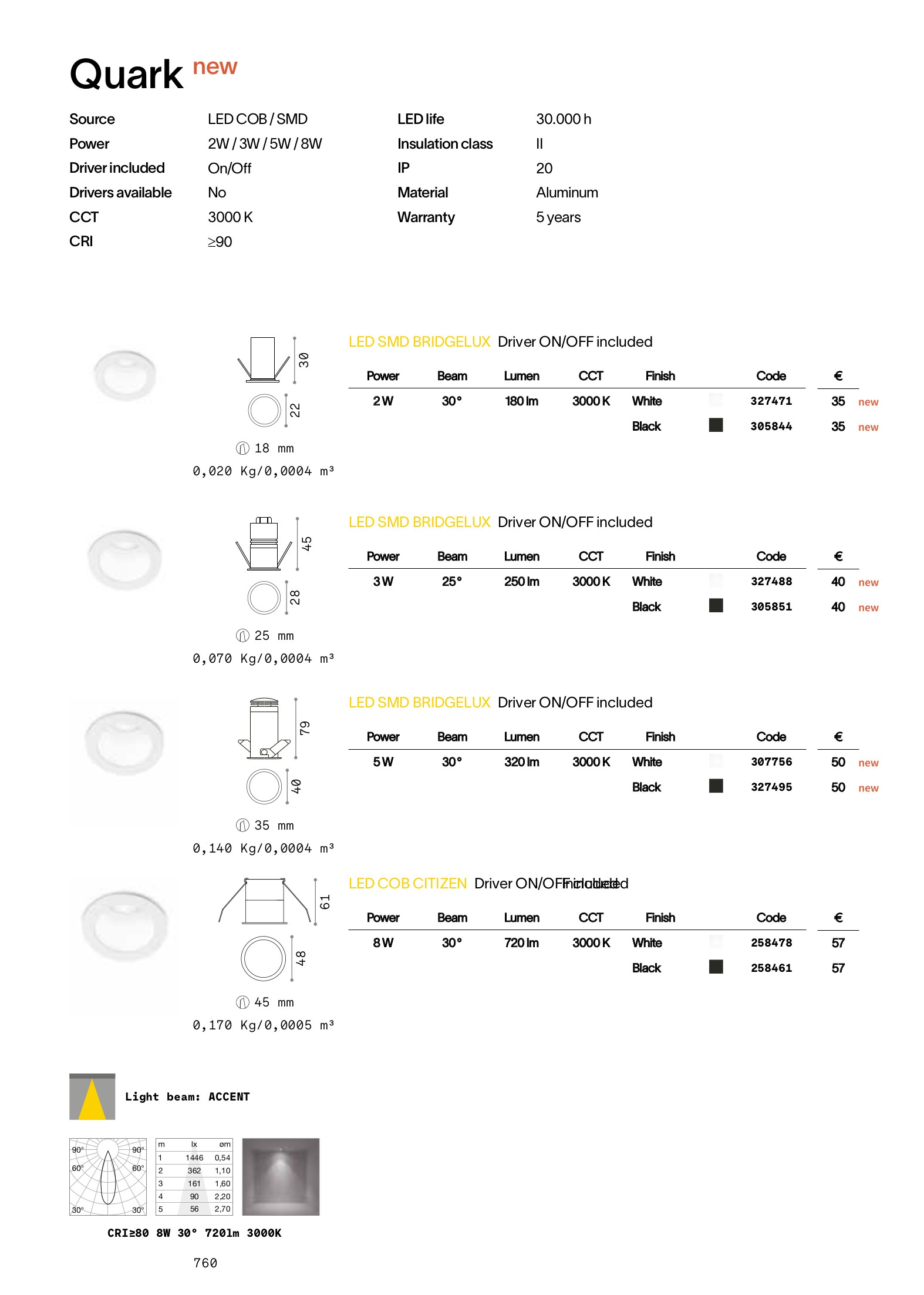 Осветителното тяло QUARK FI 4W CRI90 3000K WH представлява лед луничка / луна в съвременен стил. QUARK FI 4W CRI90 3000K WH е от категорията и е подходящо за осветяване на различни помещения и пространства като: всекидневна / хол, спалня, кухня, трапезария, коридор, антре, стълбище, офис.