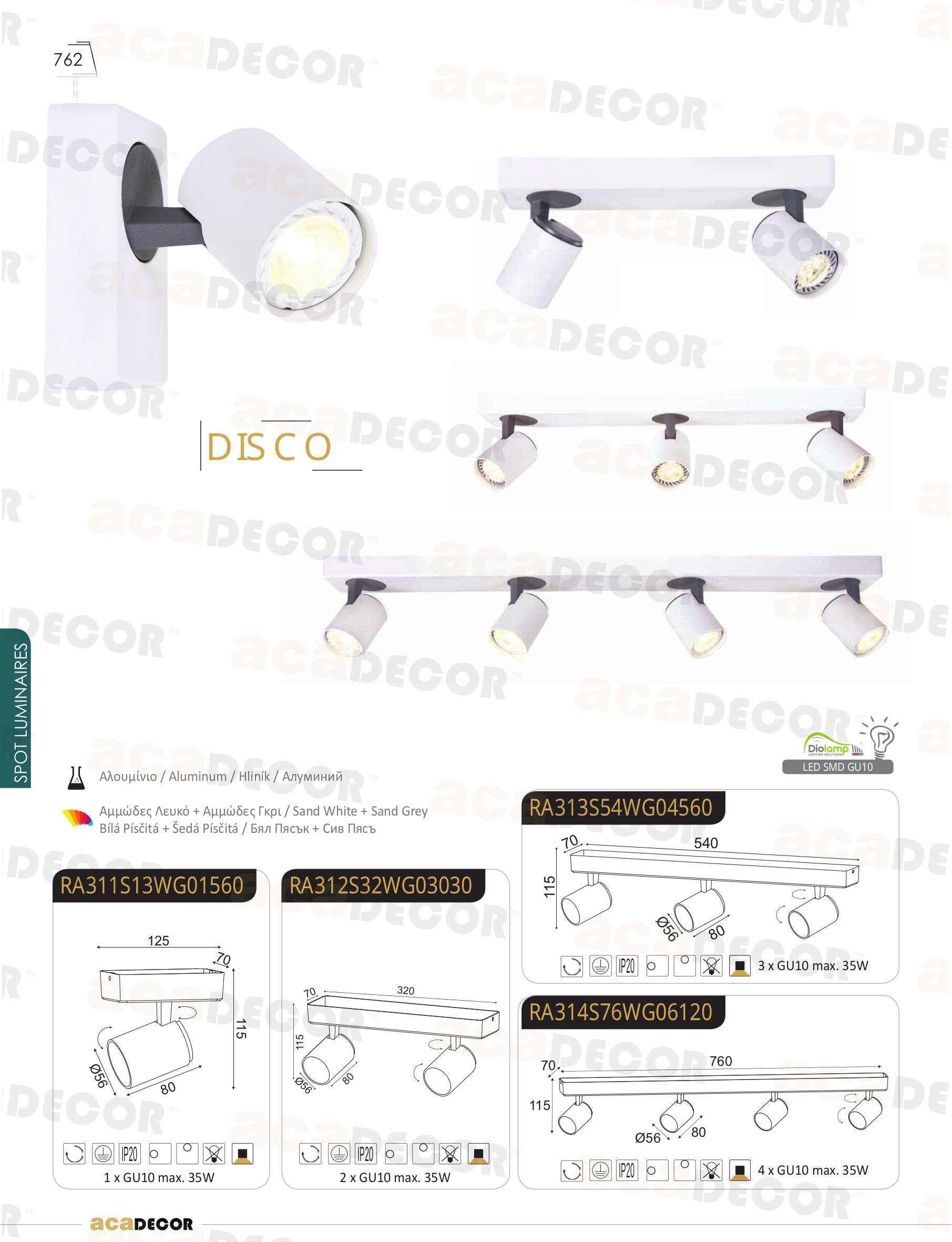 Осветителното тяло RA313S54WG ще осигури комфорт и естетика във всяко помещение, в което се постави. Цялостната визия и дизайн на лампата и вложените в изработката й материали, като алуминий в цвят пясъчно бяло, детайл в цвят тъмно сив пясък, ще допринесат за един неповторим стил. Благодарение на дългогодишния опит, качествените материали и строгия контрол на качеството на изработка на производителя ACA-Lighting (Гърция), RA313S54WG е на високо европейско ниво.