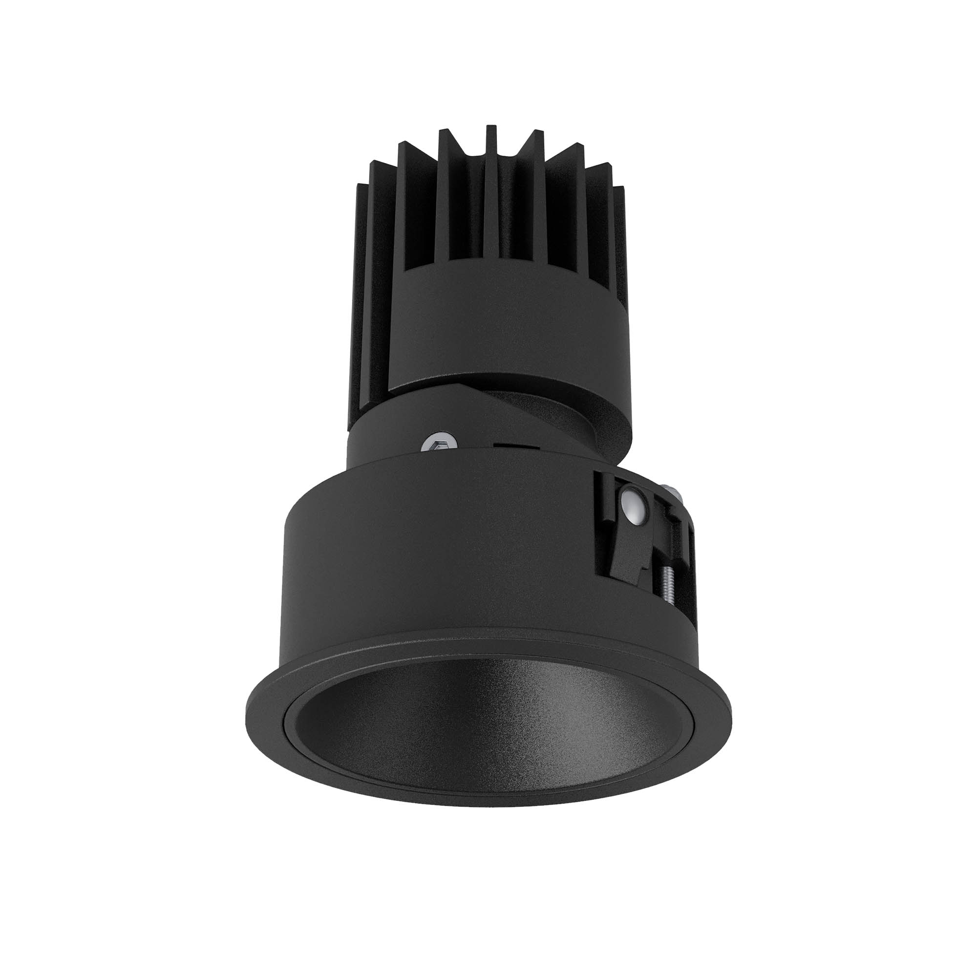 алуминий в черен цвят, нанесен с пясъкоструйна технология, радиатор от алуминий в черен цвят, вертикална регулация на светлината 0-30°, поликарбонатна леща с 36° дисперсия, пръстен от поликарбонат в черно