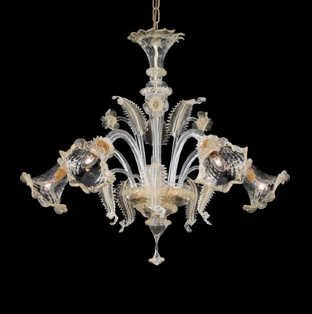 ръчно оформено издухано прозрачно стъкло с кехлибарени стъклени орнаменти, метал в цвят месинг
