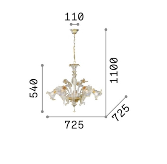 Изпълненото в дизайнерски, класически стил осветителното тяло ^RIALTO SP5 AMBRA е един чудесен кандидат за постигане на изискан баланс между осветеност и визия във Вашето осветление за хол. Вложените в изработката материали (ръчно оформено издухано прозрачно стъкло с кехлибарени стъклени орнаменти, метал в цвят месинг), заедно с цялостния дизайн и излъчване на лампата ще допринесат за подобряване на обстановката и естетиката в дома Ви. Осветителното тяло представлява полилей и може да бъде използвано за осветление в различни помещения и пространства като: всекидневна / хол, спалня, кухня, трапезария, офис. Качеството на изработката на Ideal-Lux (Италия) е на най-високо европейско ниво. Благодарение на дългогодишния опит в производството на почти всички видове осветителни тела за интериорно осветление, качествените материали, високотехнологичните методи на производство и многостепенния контрол, осветителното тяло притежава отлични характеристики.