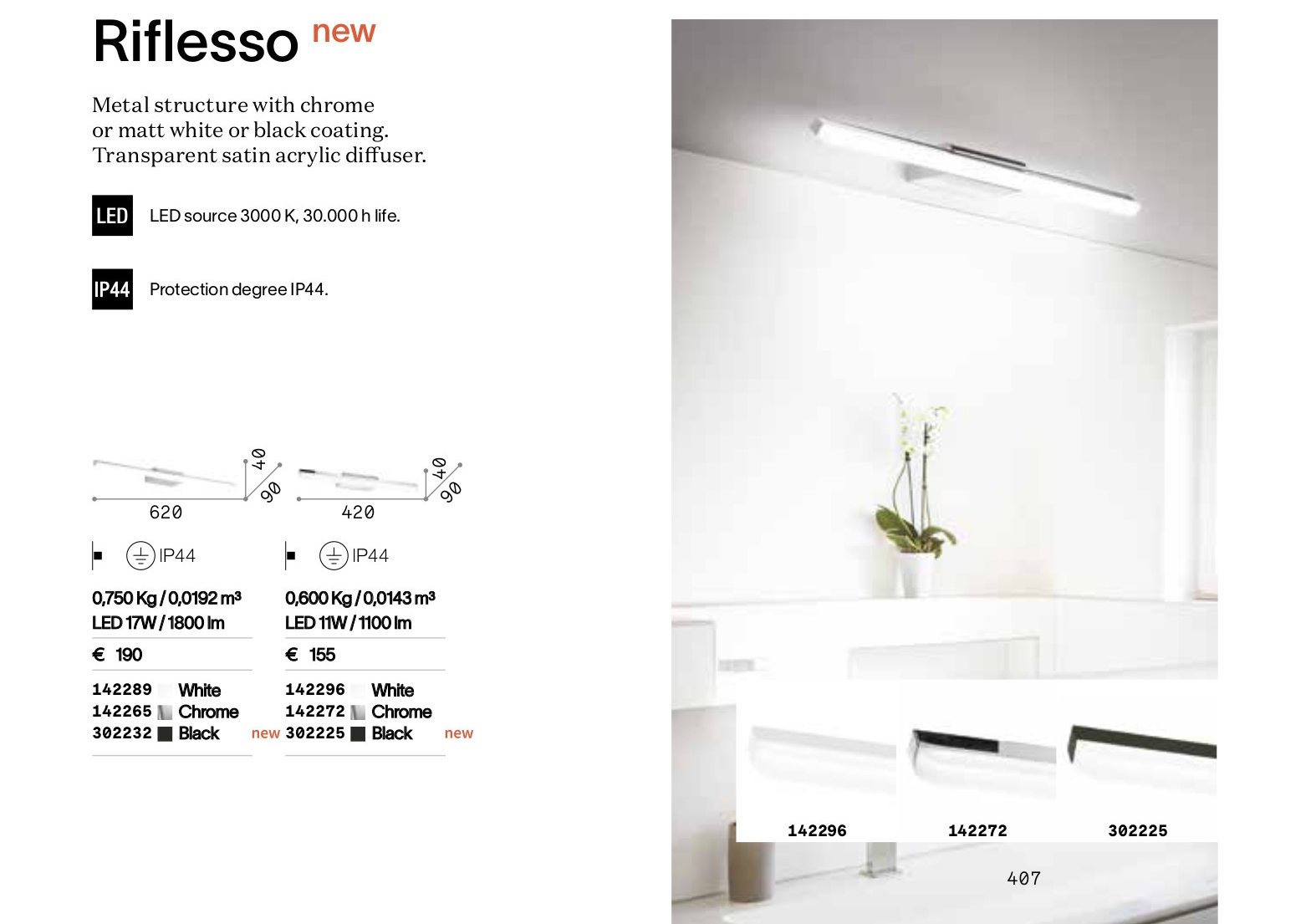 Осветителното тяло RIFLESSO AP D62 NERO представлява лед аплик в съвременен стил. RIFLESSO AP D62 NERO е от категорията и е подходящо за осветяване на различни помещения и пространства като: баня.
