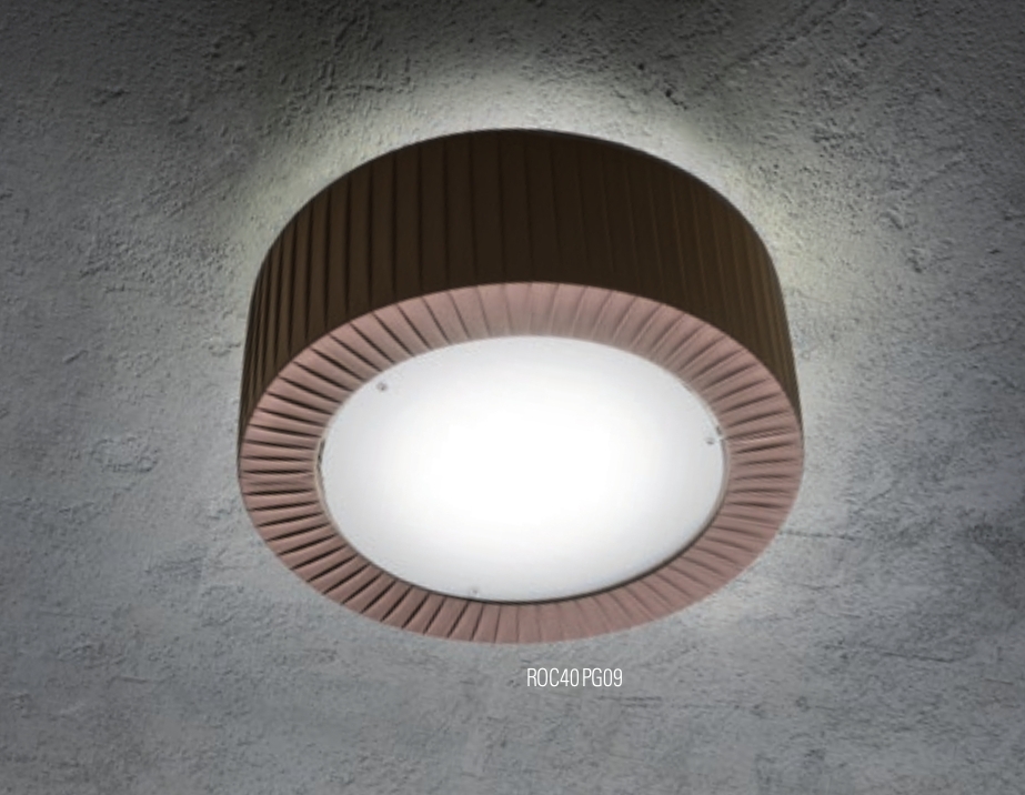 Осветителното тяло ROC40 PG представлява плафон в съвременен стил. ROC40 PG е от категорията осветителни тела и е подходящо за осветяване на различни помещения и пространства като: всекидневна / хол, спалня, кухня, трапезария, коридор, антре, стълбище, офис.