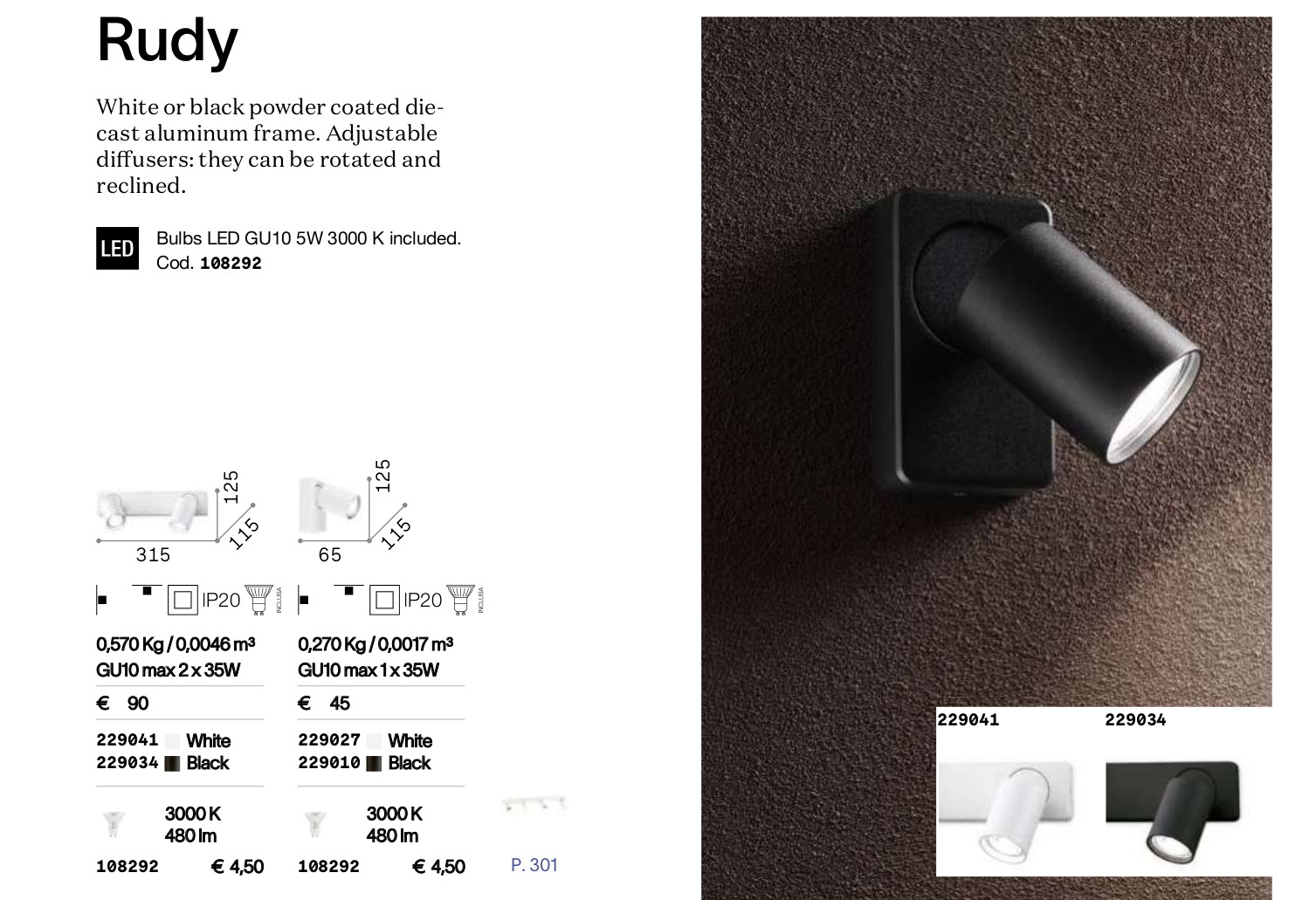 Осветителното тяло RUDY AP2 ROUND BIANCO представлява лед аплик, спот лампа в съвременен стил. RUDY AP2 ROUND BIANCO е от категорията и е подходящо за осветяване на различни помещения и пространства като: всекидневна / хол, спалня, кухня, трапезария, коридор, антре, стълбище, офис.
