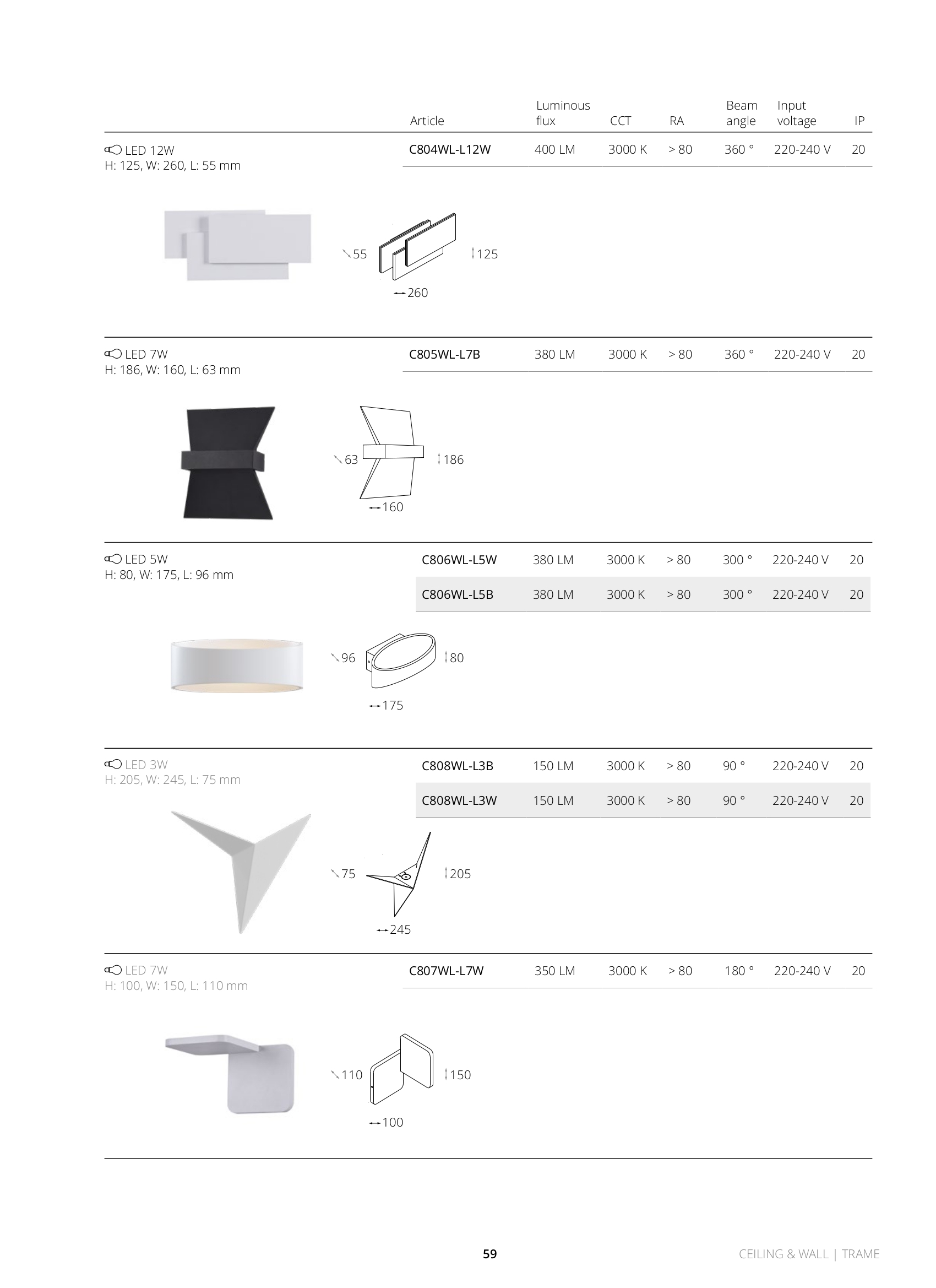 Осветителното тяло C804WL-L12W представлява аплик в съвременен стил. C804WL-L12W е от категорията осветителни тела и е подходящо за осветяване на различни помещения и пространства като: всекидневна / хол, спалня, кухня, трапезария, коридор, антре, стълбище, офис.