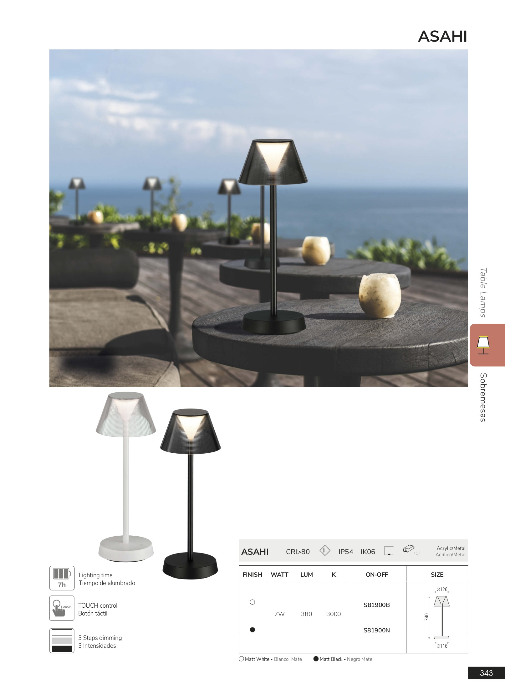 Лед настолна лампа, външна лампа S81900B (Wall lamp White) ще осигури комфорт и естетика във всяко помещение, в което се постави. Цялостната визия и дизайн на led лампата и вложените в изработката й материали, като метал в цвят бял мат, полимер, touch контрол, време на светене след зареждане 7h, ще допринесат за един неповторим стил. Благодарение на дългогодишния опит в производството на лед осветление, качествените материали и строгия контрол на качеството на изработка на производителя ACB (Испания), S81900B (Wall lamp White) е на високо европейско ниво.
