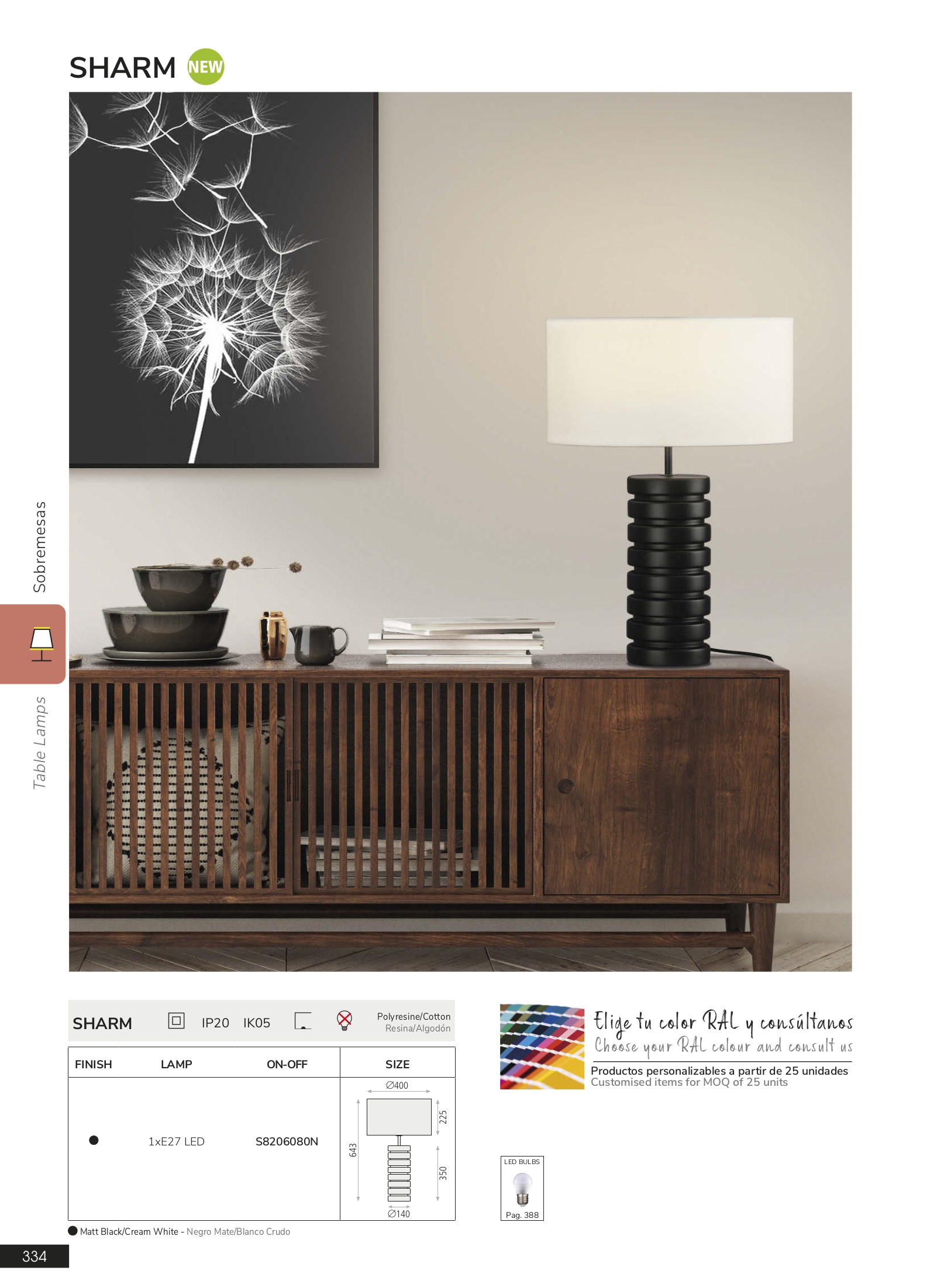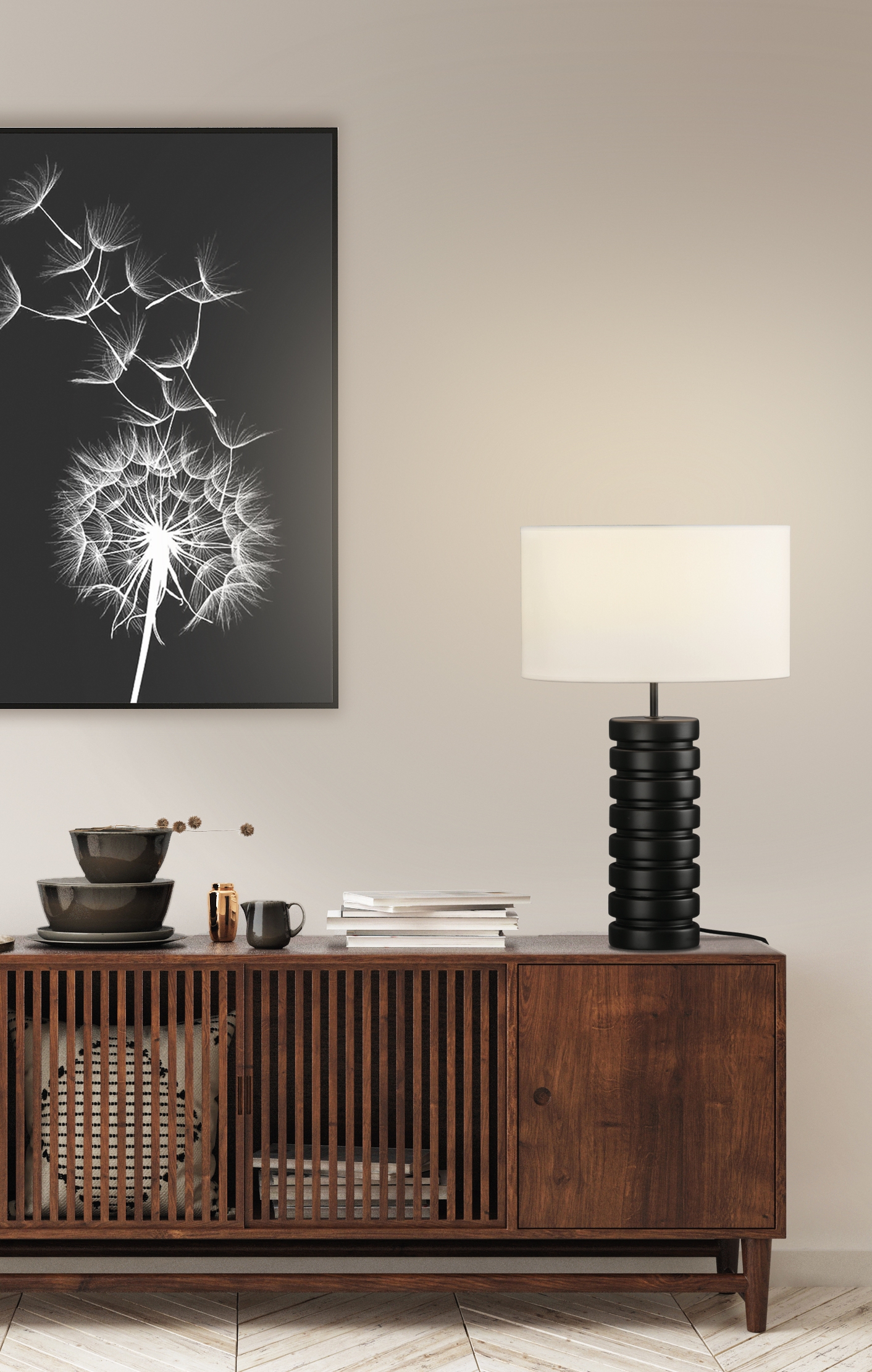 Стилът и естетиката на интериора ще се обогатят благодарение, както на цялостната визия, стил и дизайн на осветителното тяло, така и на вложените от производителя в изработката на S8206080N (Table lamp), качествени материали, като: полирезин в матово черно, памук в кремаво бяло.