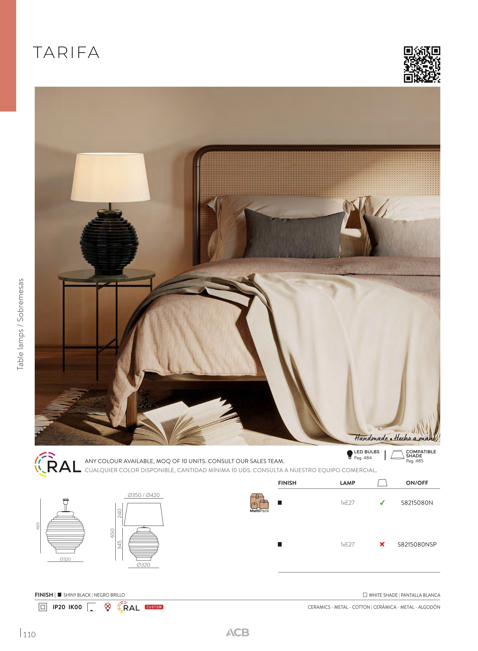 Стилът и естетиката на интериора ще се обогатят благодарение, както на цялостната визия, стил и дизайн на осветителното тяло, така и на вложените от производителя в изработката на S8215080N, качествени материали, като: керамика в блестящ черен цвят, метал в черно, текстил в бяло, ръчна изработка.