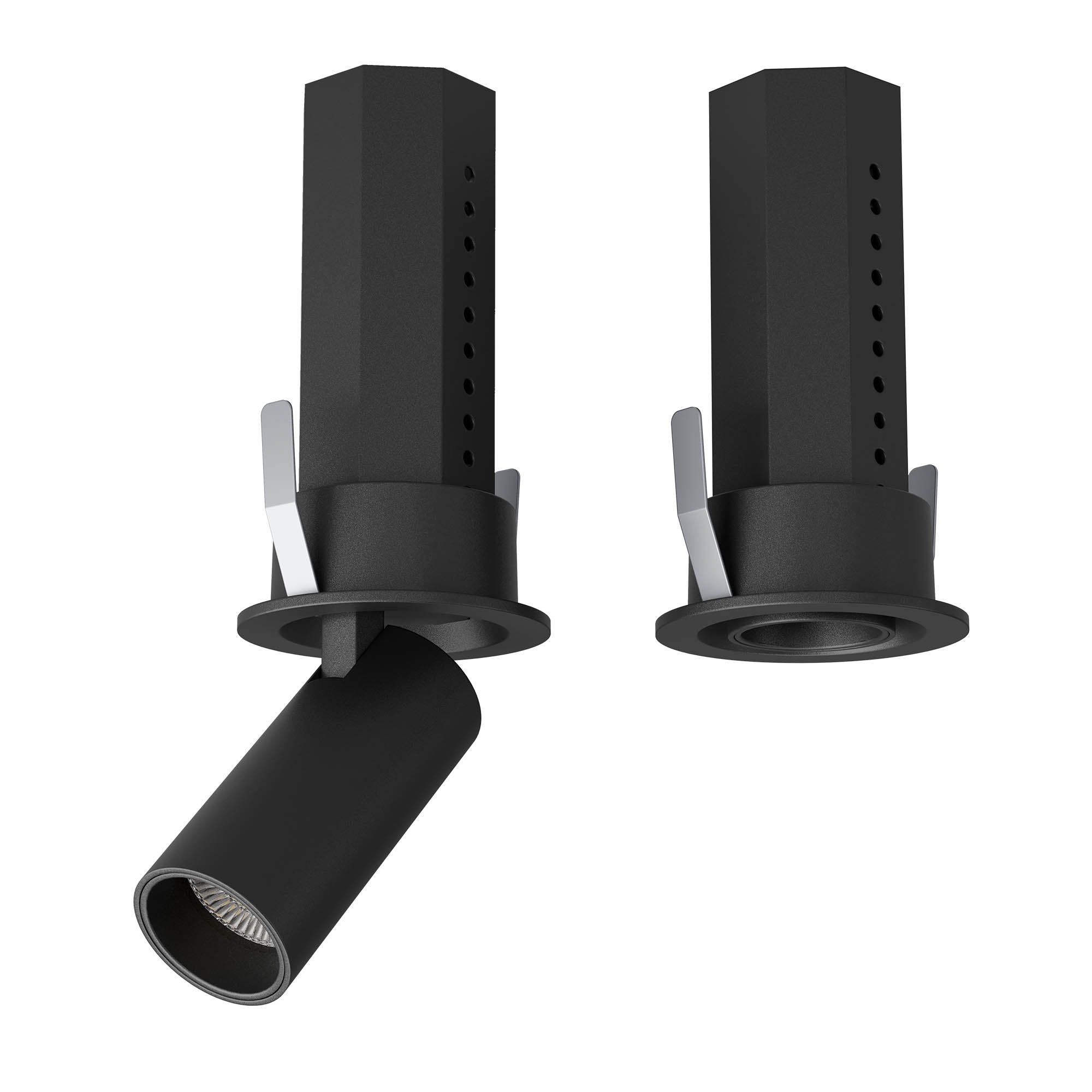 алуминий в черен цвят, нанесен с пясъкоструйна технологrия, корпус, пръстен и странични плъзгачи от черен поликарбонат, Оптична система FRESNEL леща от поликарбонат с 36° ъгъл на дисперсия, изваждащо се и насочващо се тяло