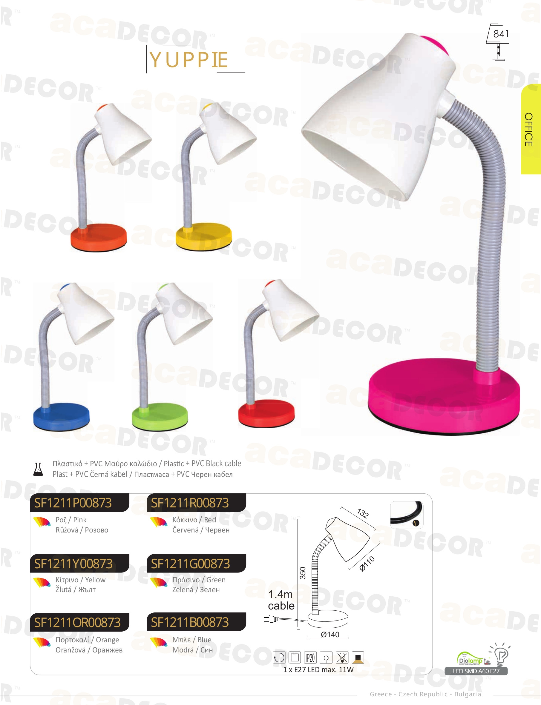 Ел. мощност 1 х 11 W Размери 35см x 13.2см x Ф11см Производител ACA-Lighting, Гърция