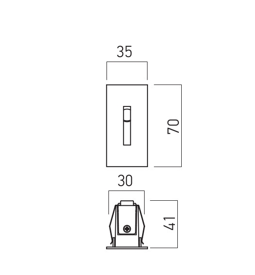 лят алуминий с електростатично нанесено пясъкоструйно покритие в черно, скоби за закрепване към стени от гипсокартон, вградена кутия от поликарбонат с бял перфориран метал лист в предната част за монтаж в стени от бетон, прозрачен дифузьор от поликарбонат