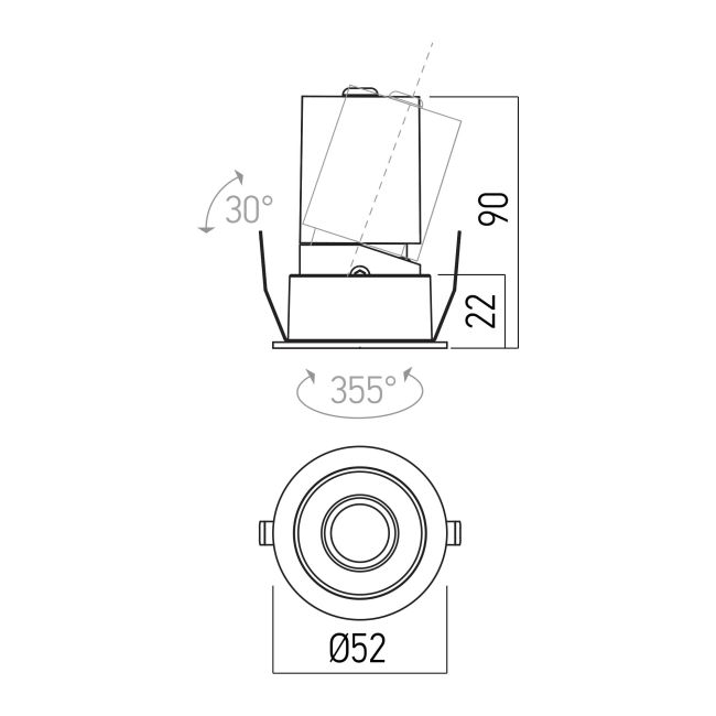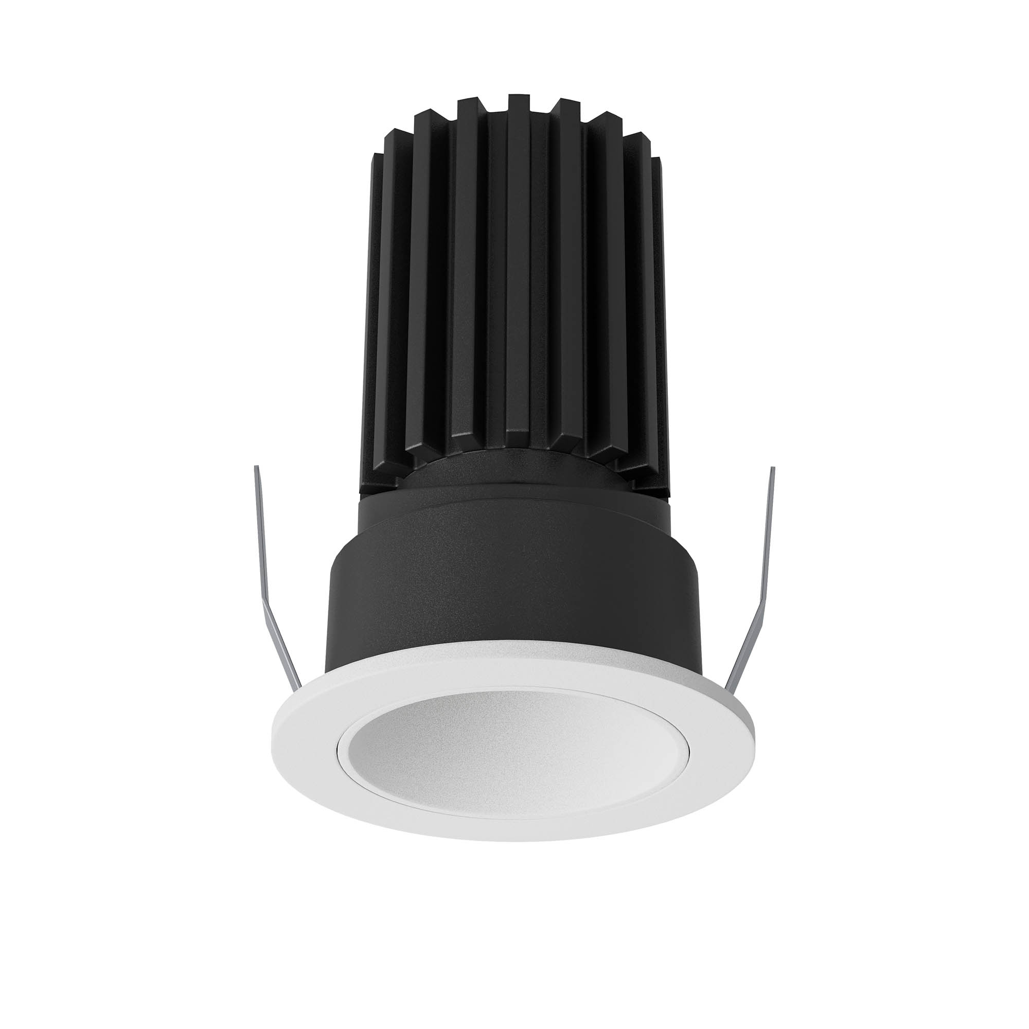 лят под налягане алуминий в бял цвят, нанесен с пясъкоструйна технологrия, корпус и радиатор от лят алуминий в пясъчно черен цвят, пръстен от бял поликарбонат, възможност за накланяне осветителното тяло до 30°