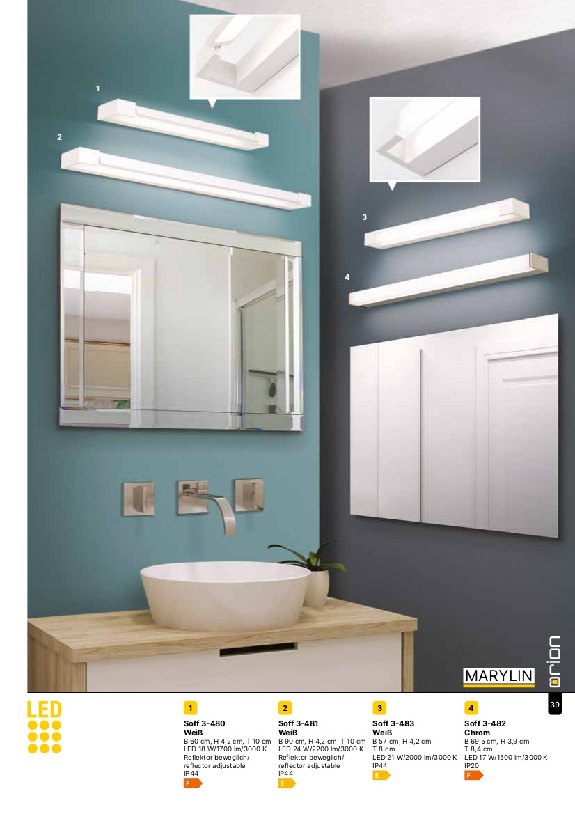 Лед аплик Soff 3-482 chrom (LED17W/1500lm/3000K) ще осигури комфорт и естетика във всяко помещение, в което се постави. Цялостната визия и дизайн на led лампата и вложените в изработката й материали, като алуминий с покритие в цвят хром, опалово матов акрилен дифузьор, ще допринесат за един неповторим стил. Благодарение на дългогодишния опит в производството на лед осветление, качествените материали и строгия контрол на качеството на изработка на производителя Orion (Австрия), Soff 3-482 chrom (LED17W/1500lm/3000K) е на високо европейско ниво.