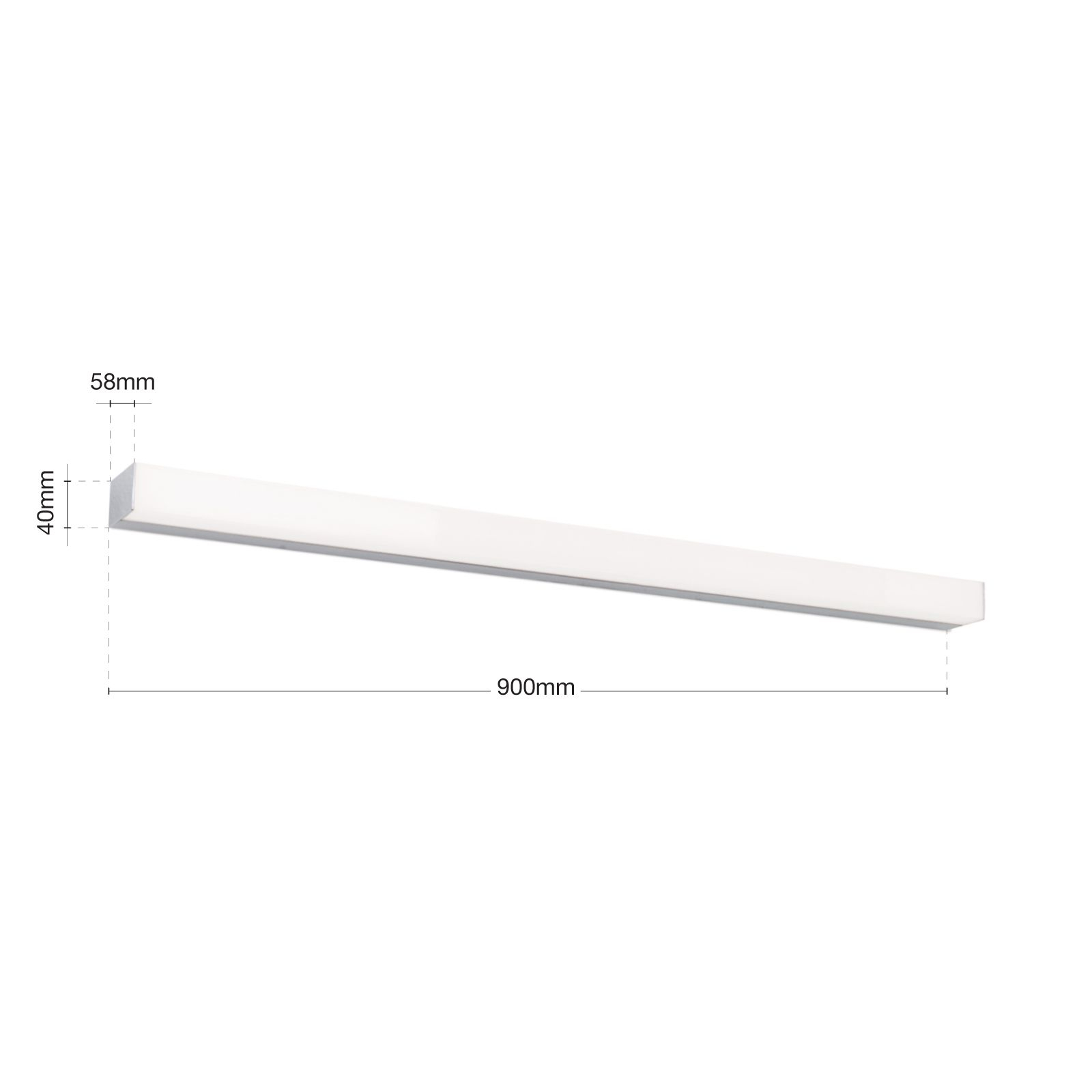 алуминий в цвят хром, поликарбонат в цвят опал мат, ССТ 3000/4000К, скобите за монтаж на огледало или вертикална повърхност са включени в комплекта