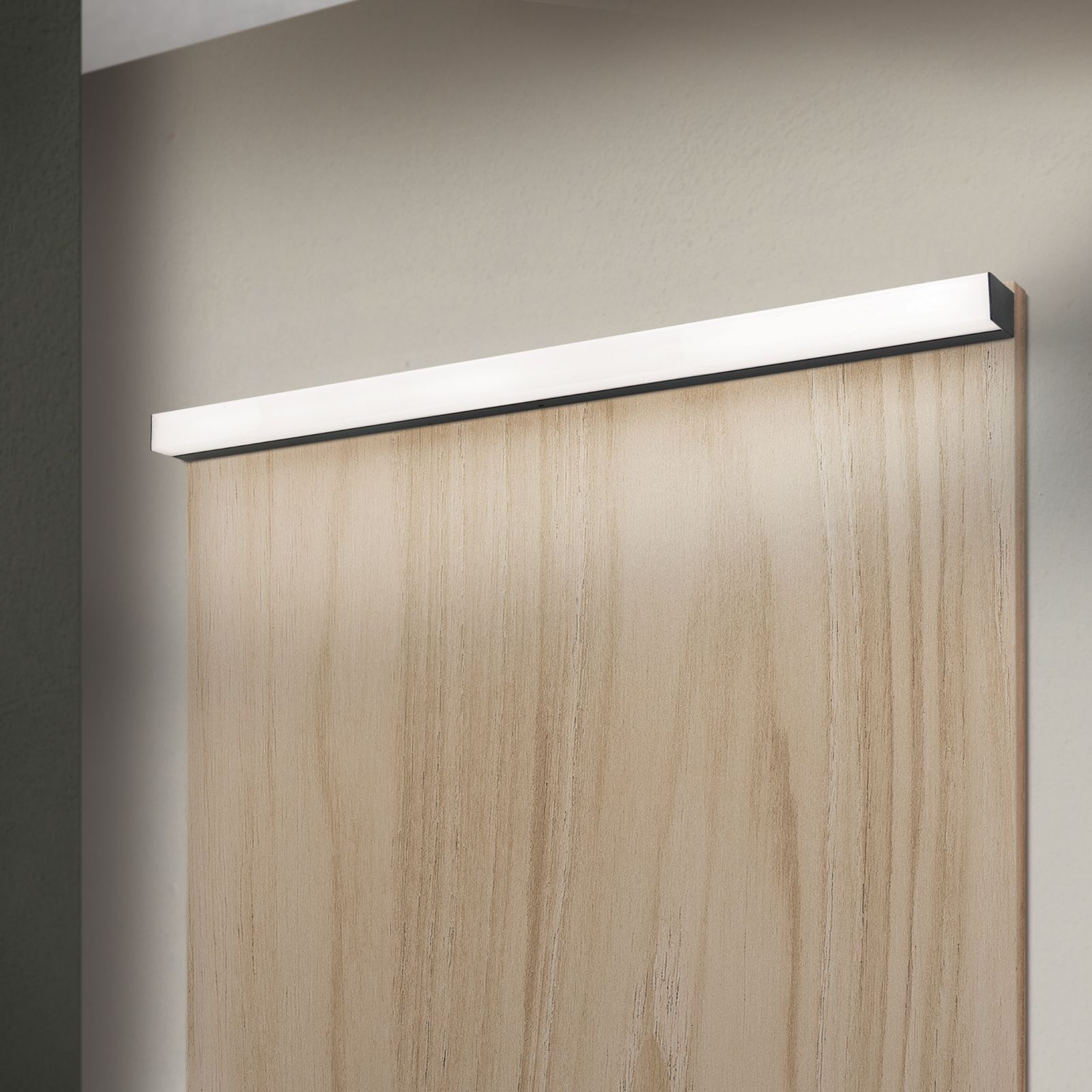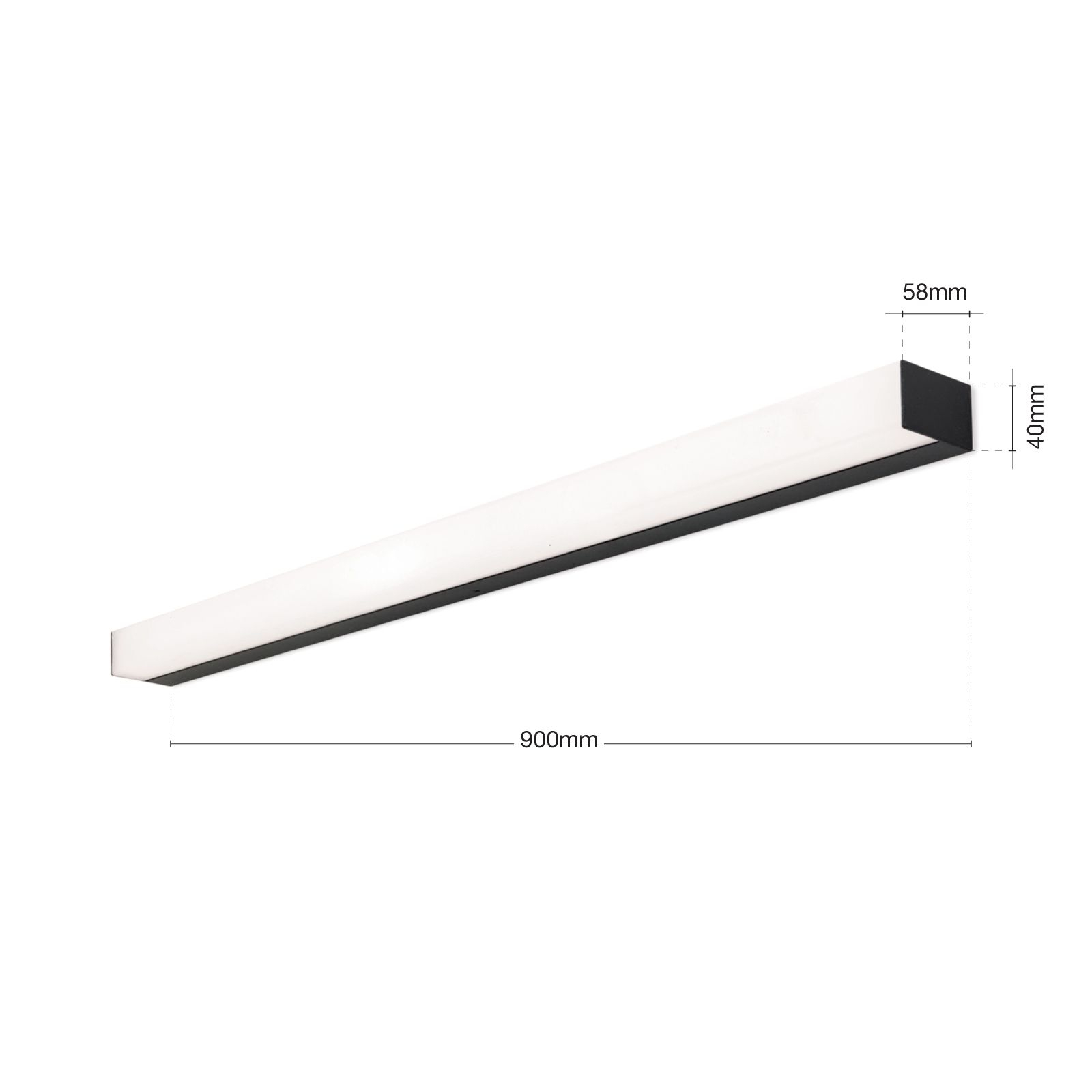 алуминий в черен цвят, поликарбонат в цвят опал мат, ССТ 3000/4000К, скобите за монтаж на огледало или вертикална повърхност са включени в комплекта