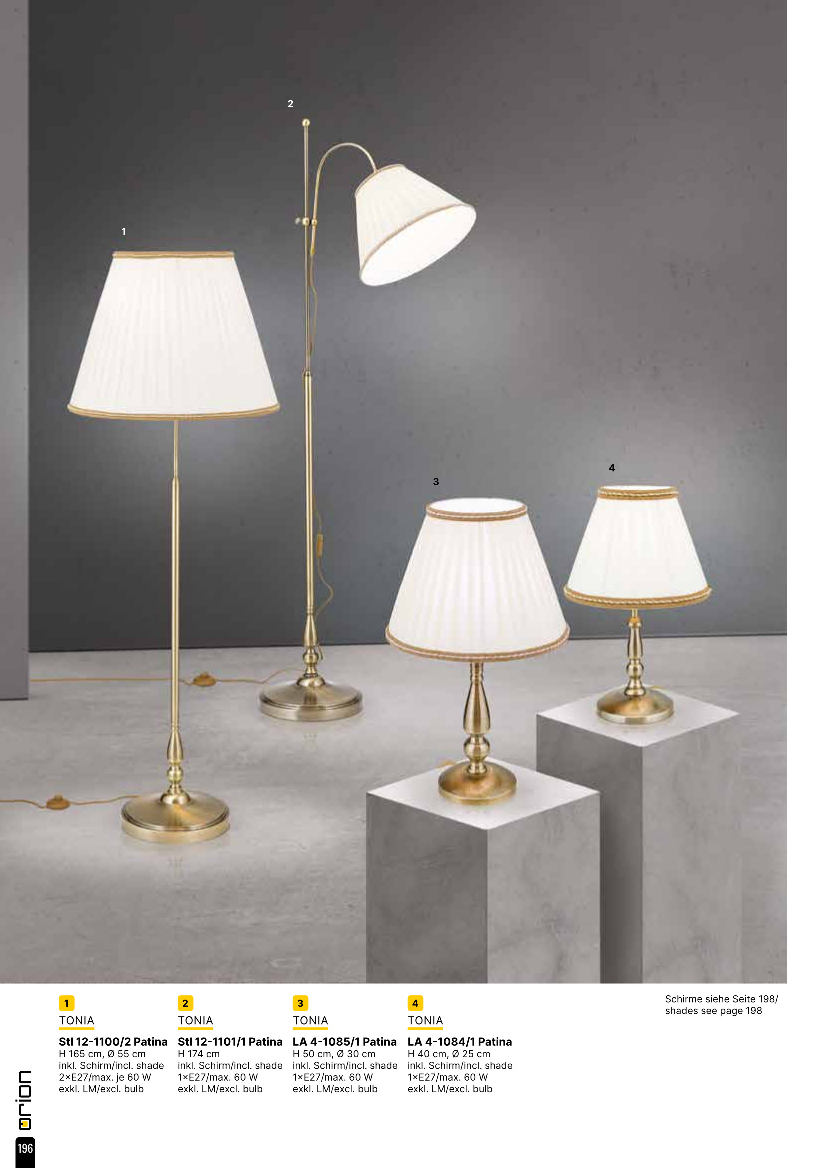 Осветителното тяло Stl 12-1100/2 Patina (2xE27) ще осигури комфорт и естетика във всяко помещение, в което се постави. Цялостната визия и дизайн на лампата и вложените в изработката й материали, като метал в цвят патина, текстилна шапка, ще допринесат за един неповторим стил. Благодарение на дългогодишния опит, качествените материали и строгия контрол на качеството на изработка на производителя Orion (Австрия), Stl 12-1100/2 Patina (2xE27) е на високо европейско ниво.