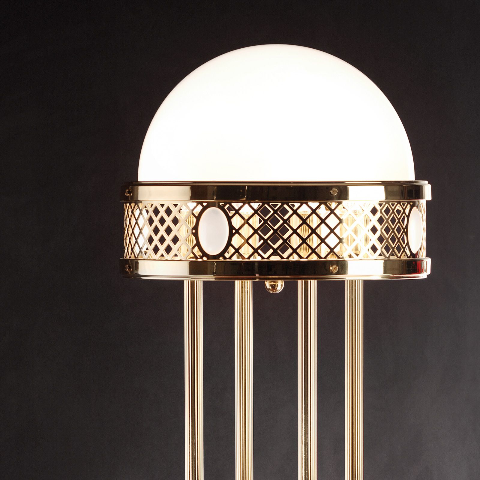 За стила и естетиката на обстановката в изключително висока степен допринасят, както цялостната визия, стилна изработка и елегантен дизайн на осветителното тяло, така също и използваните при изработката материали, като: стомана с покритие от блестящ месинг, стъкло в цвят блестящ опал.