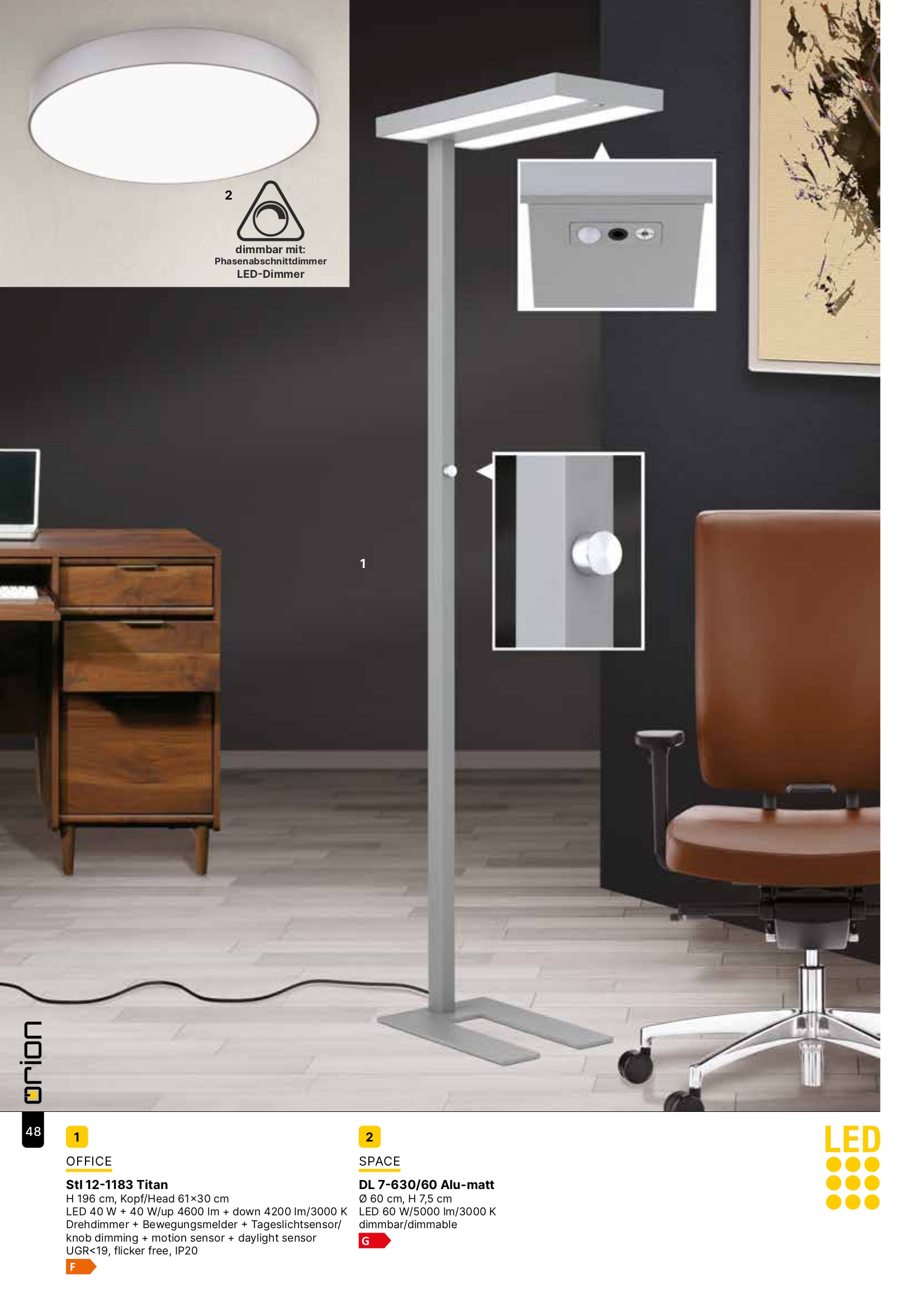 Осветителното тяло Stl 12-1183 Titan (LED40W+40W/4600+4200l ще осигури комфорт и естетика във всяко помещение, в което се постави. Цялостната визия и дизайн на лампата и вложените в изработката й материали, като алуминий в цвят титан, алуминий в цвят сребрист мат, сензор за дневна светлина, движение и димер, пряка и непряка светлина, ще допринесат за един неповторим стил. Благодарение на дългогодишния опит, качествените материали и строгия контрол на качеството на изработка на производителя Orion (Австрия), Stl 12-1183 Titan (LED40W+40W/4600+4200l е на високо европейско ниво.