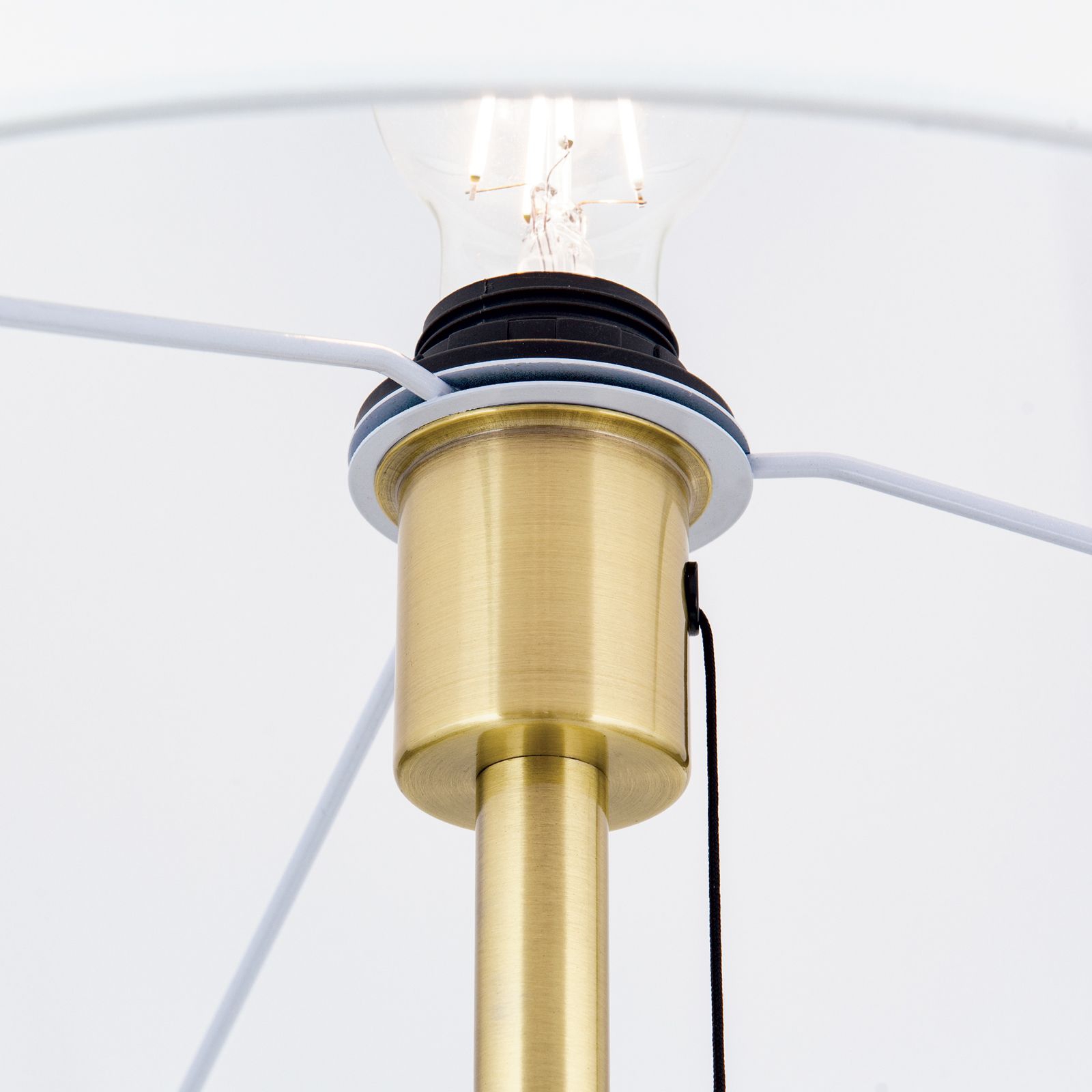 стомана в цвят сатен месинг, абажур от текстил в бяло, превключвател - въженце