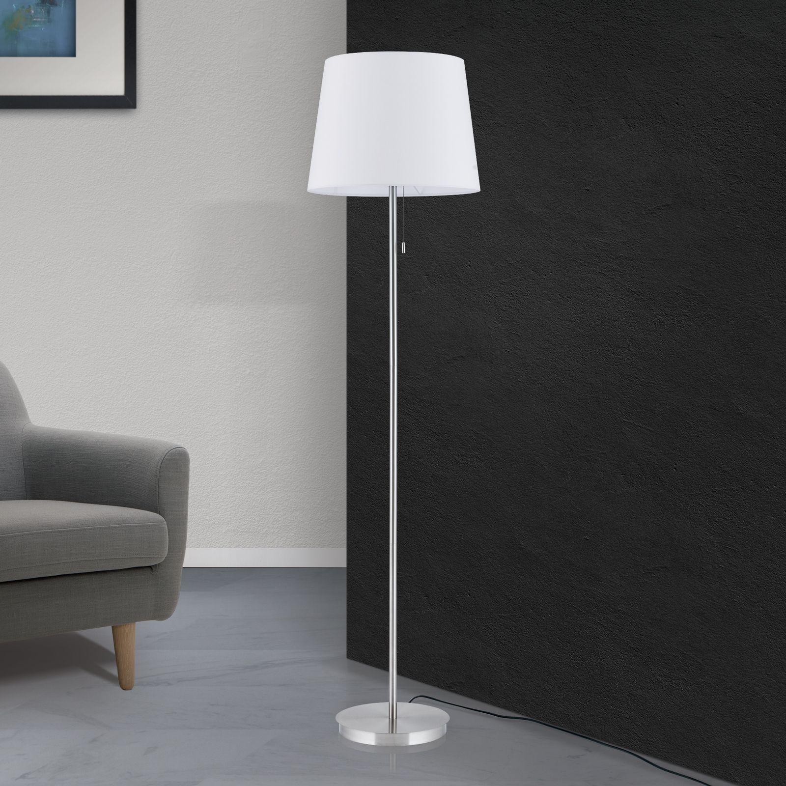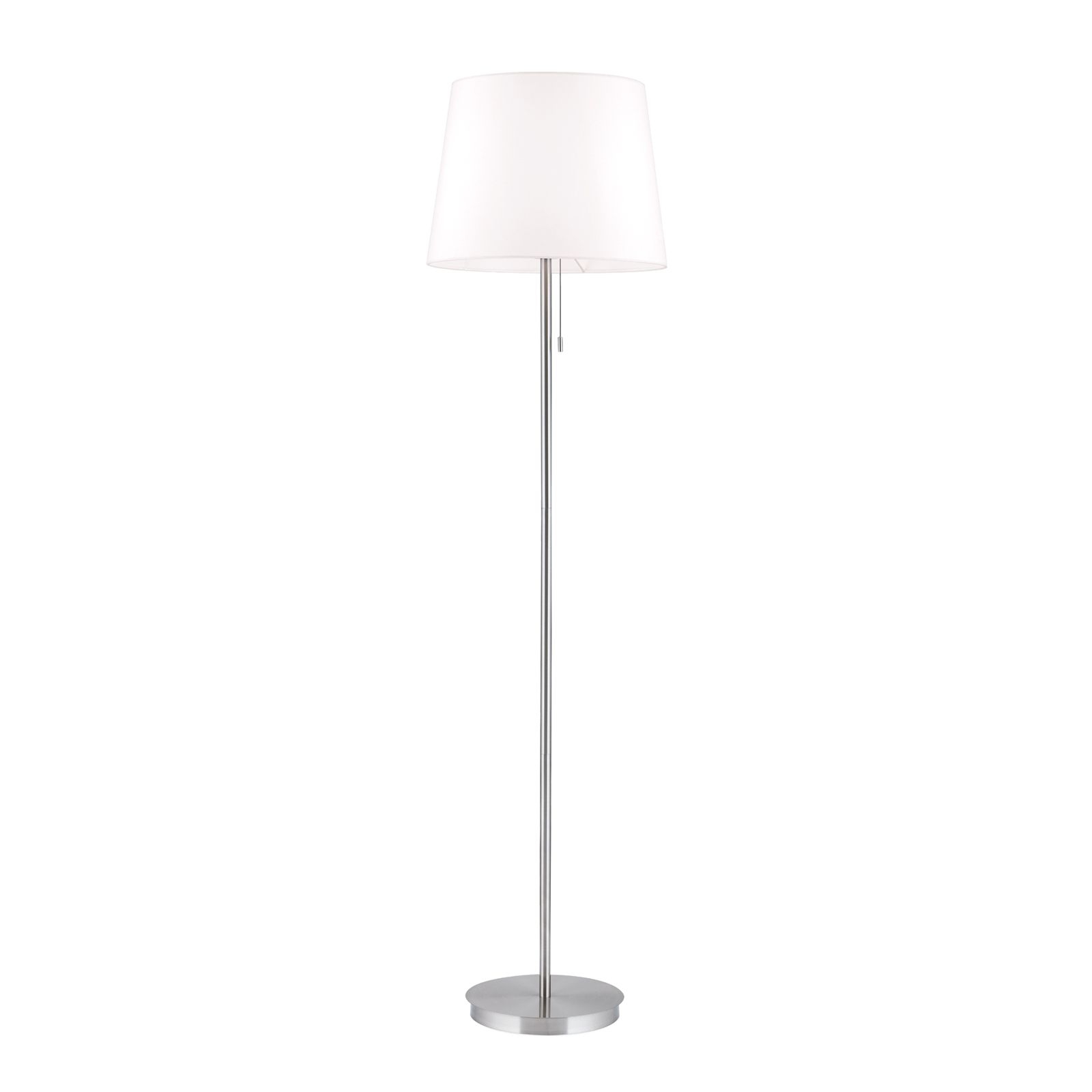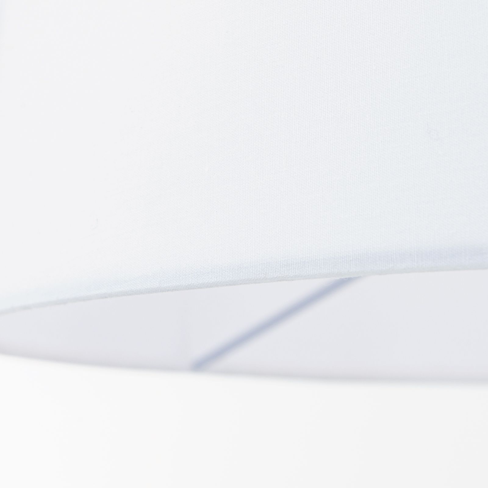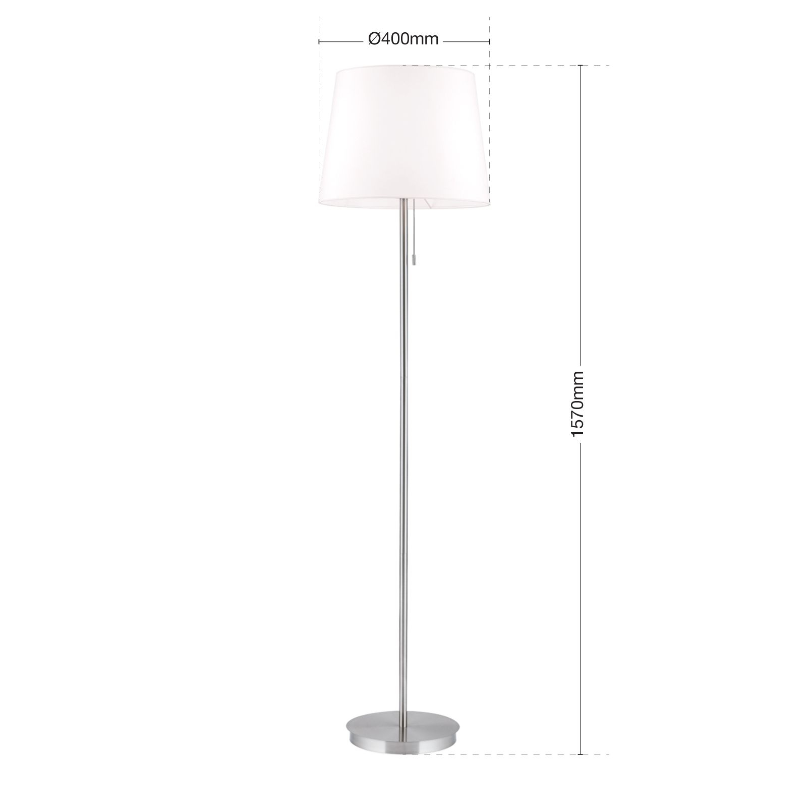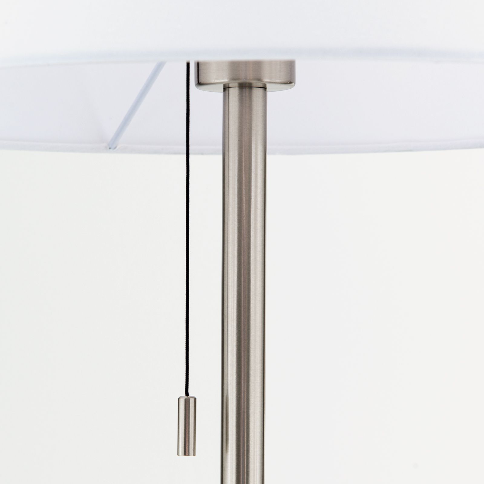стомана в цвят хром сатен, абажур от текстил в бяло, превключвател - въженце