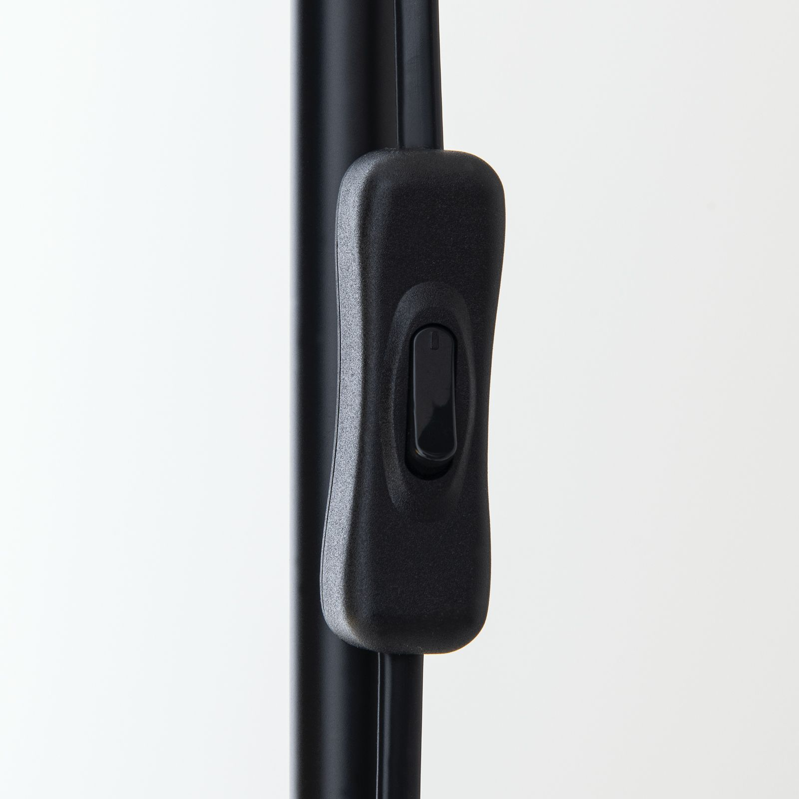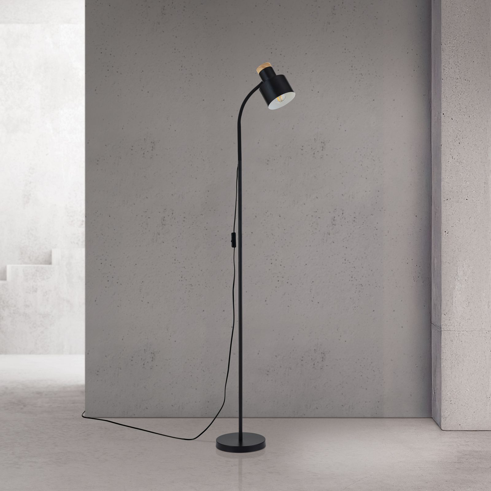 метал в матово черен цвят, детайл от дърво, гъвкаво рамо, превключвател ON-OFF