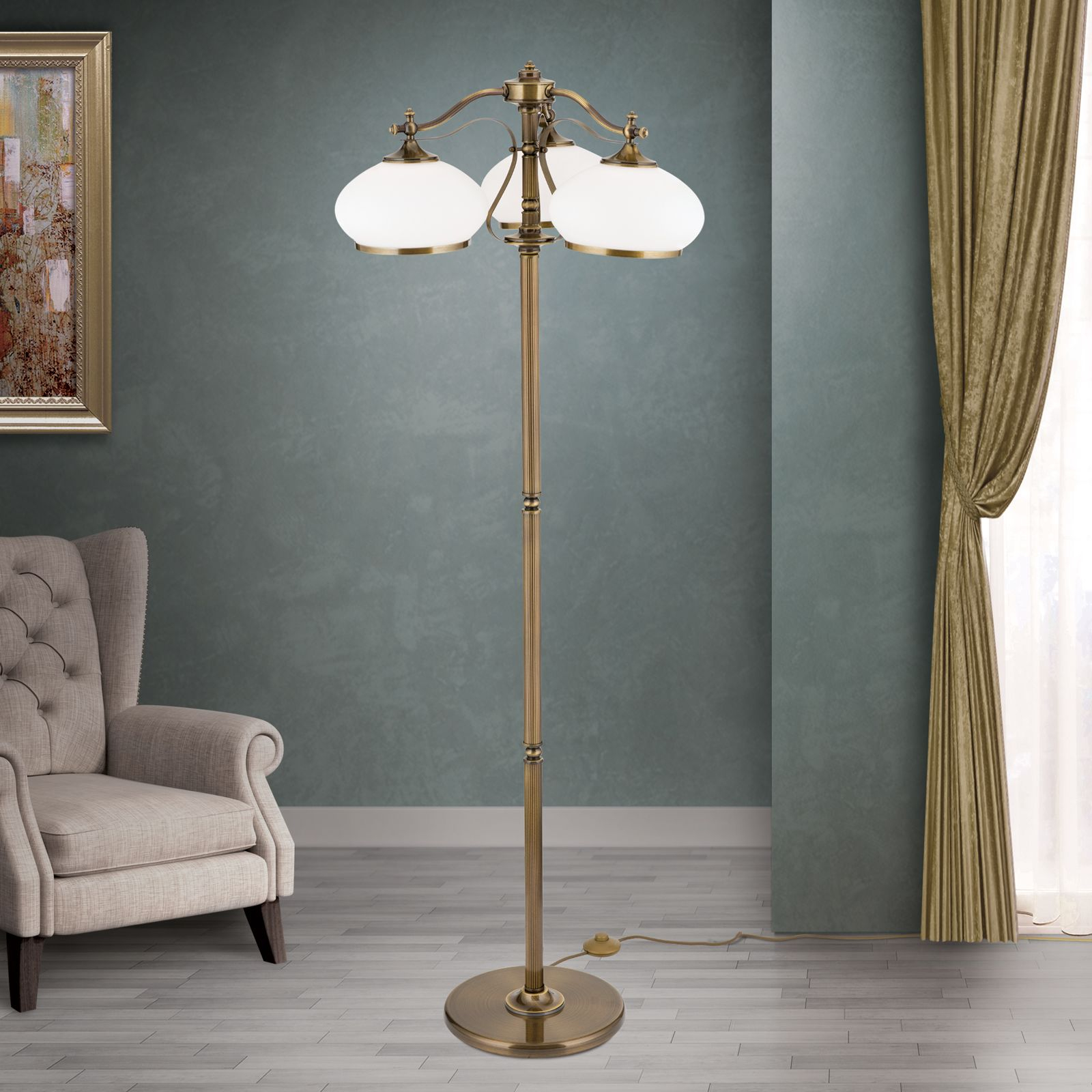 Представяме Ви осветителното тяло Stl 12-938/3 Patina/385 opal-Patina, което представлява лампион / правостояща лампа в класически стил. Тази лампа е част от категорията и е много подходяща за различни помещения и пространства във Вашия дом или офис, като например всекидневна / хол, спалня, трапезария, офис.
